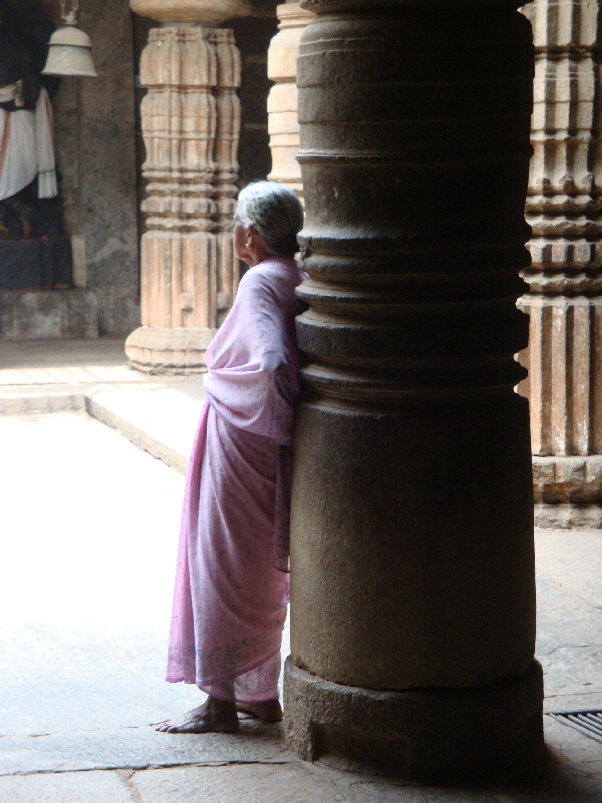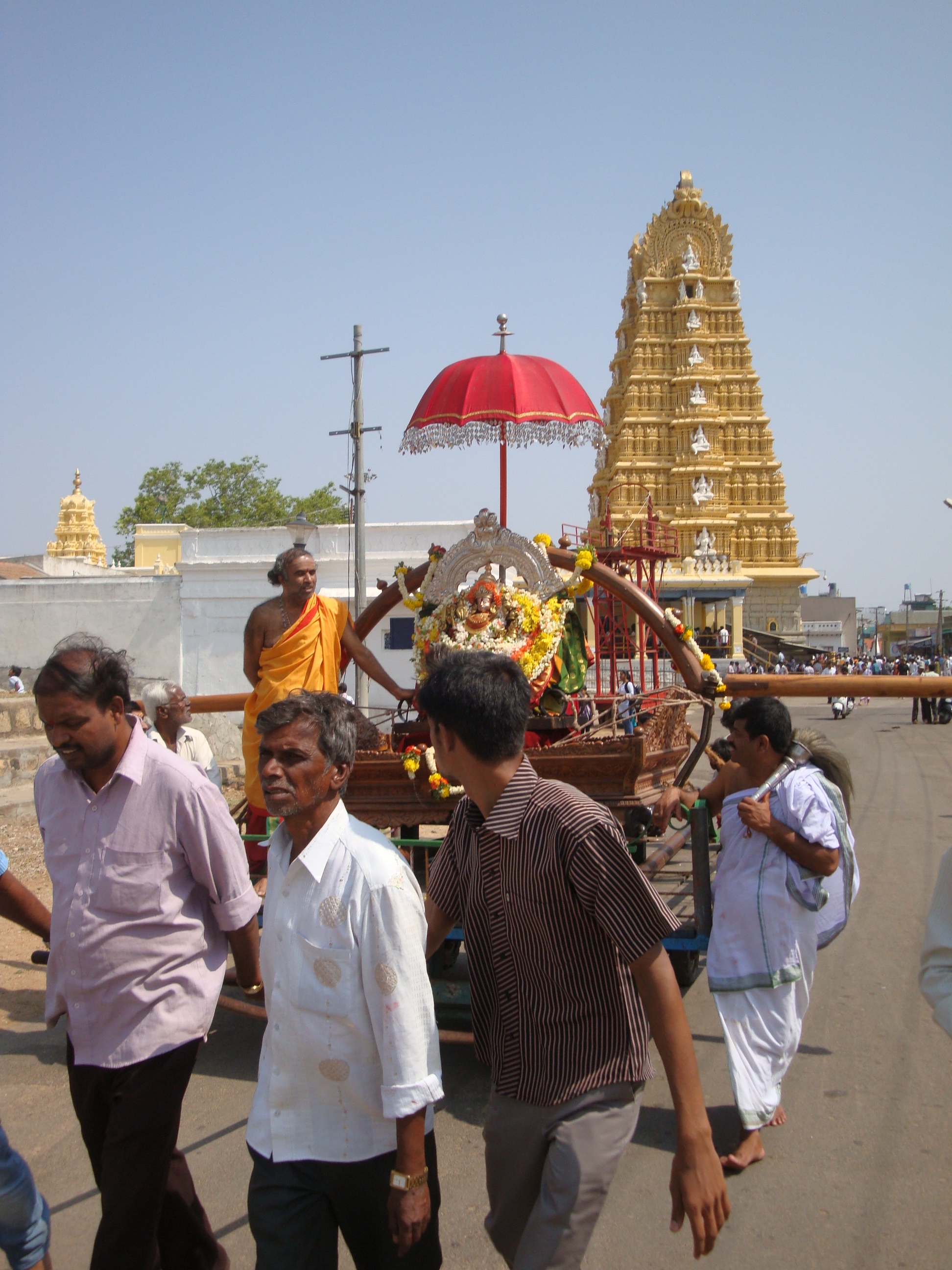 We went up Mysore’s Chamundi Hill to see another temple. It looked nice, but the queue of 5 thousand trying to get in was a bit daunting. We found another, older, quieter temple and a geezer with a tea-towel round his waist dabbed some red stuff on my forehead, tied a bracelet on my wrist and demanded money with menaces. Why are Hindu priests invariably the biggest slobs around? I paid up, it was about 20p and guaranteed to bring me good luck. And anything that prevented his fat, sweaty, hairy back being shoved up against me, I considered to be good luck.