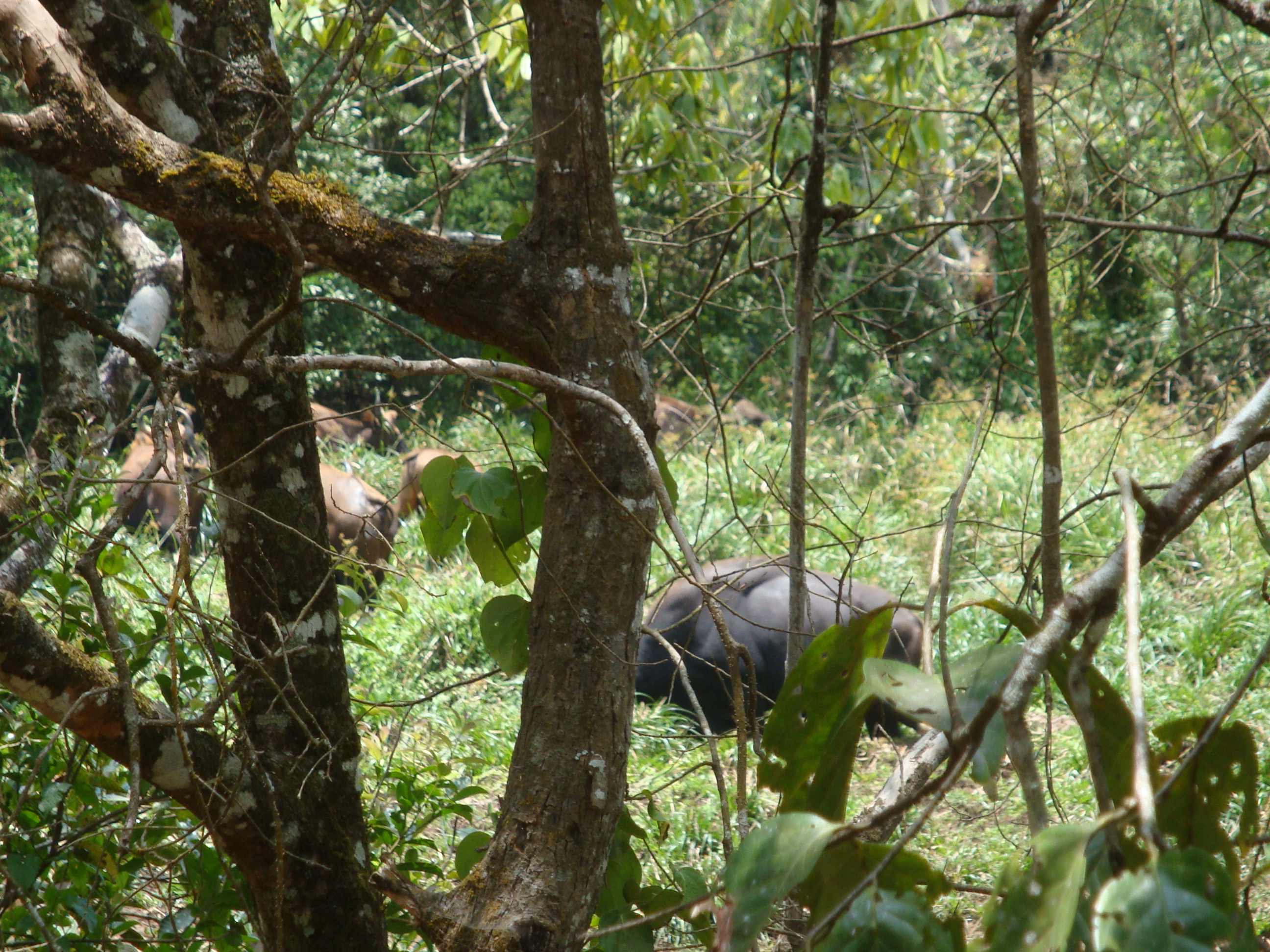 Finally, we move on, until, “Aargh! Screech! Wassat! Is that a leech?! Oh my God it is! Aargh! Screetch! Getitoff!” It seems that gladiator sandals are not leech-proof. But then it becomes apparent that Trainers aren’t either. We look at our feet. Leeches are squirming their way through the eyelets, through the airholes, through our socks. Liz already has a big, bloody patch on one sock. We stop and balance each other as shoes and socks are removed and de-leached. I look around the rock we are standing on and the whole surface is alive and writhing towards us. Sanjay decides this would be a good time to get us out of there and sets off up a near vertical slope of thorns and saw-grass and red ants. Somehow we get up without falling backwards to almost certain death by blood-letting and emerge onto a village track, where we spend 10 minutes de-leaching again, I even check inside my boxers. We have been off-track for a good 50 metres. Still, we got our adventure.