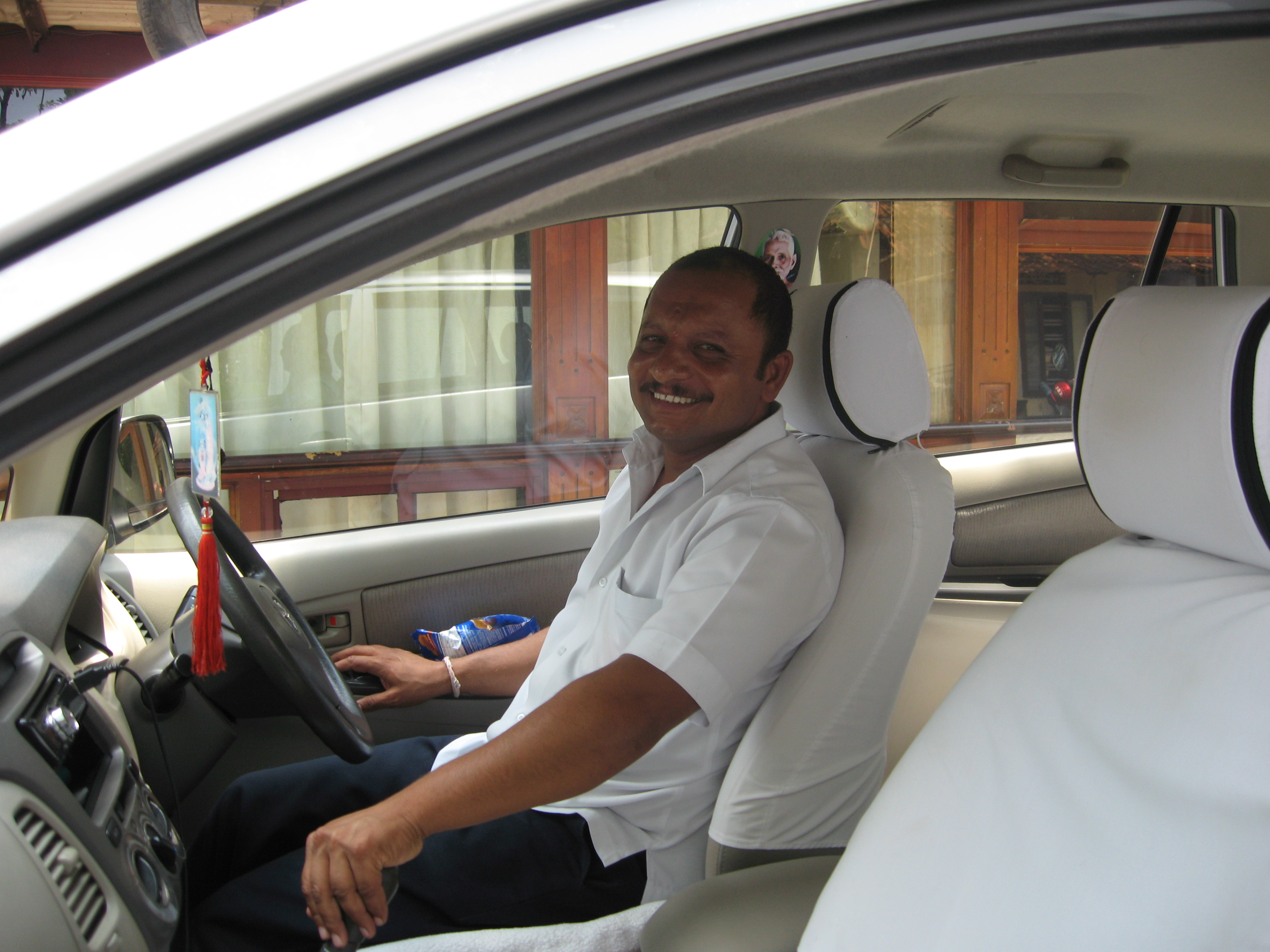 The morning mists cleared over the backwaters and we bleary eyed travelers welcomed our Taxi driver. Gireesh had left us the day before, his duties done and done excellently. He had guided us safely over many miles, always in good cheer. “What to do? What to do?” He left us, the recipient of a handsome tip and Liz’s annoying little squeaky duck, a present for his son.
