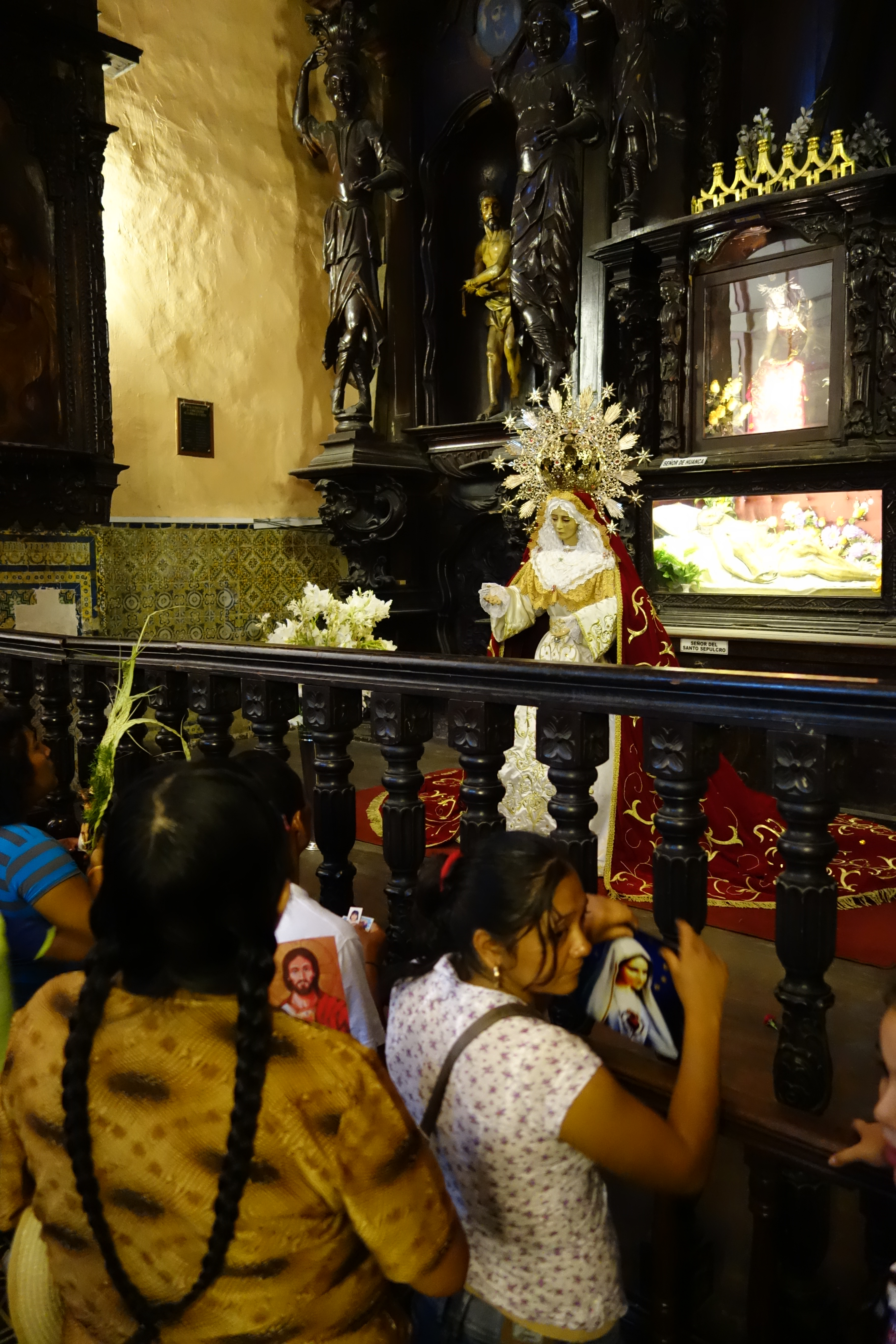 Breakfast in the garden and then Brenda picked us up for a City tour. There isn’t much to Lima, it seems to be the place you go to, to get out of. It was Good Friday so a lot of stuff was on the quiet side but, the main town square was heaving. The Cathedral was giving it big licks, speakers pointing out into the square and an endless supply of Padres screaming about the sacrifices made by HeyZeus, making my head feel like I was the one wearing the crown of thorns. Crowds of people crowding into any building vaguely religious. Vendors selling Jesus, crucified, wrapped in a corn husk. Snack or Icon? Difficult to tell.