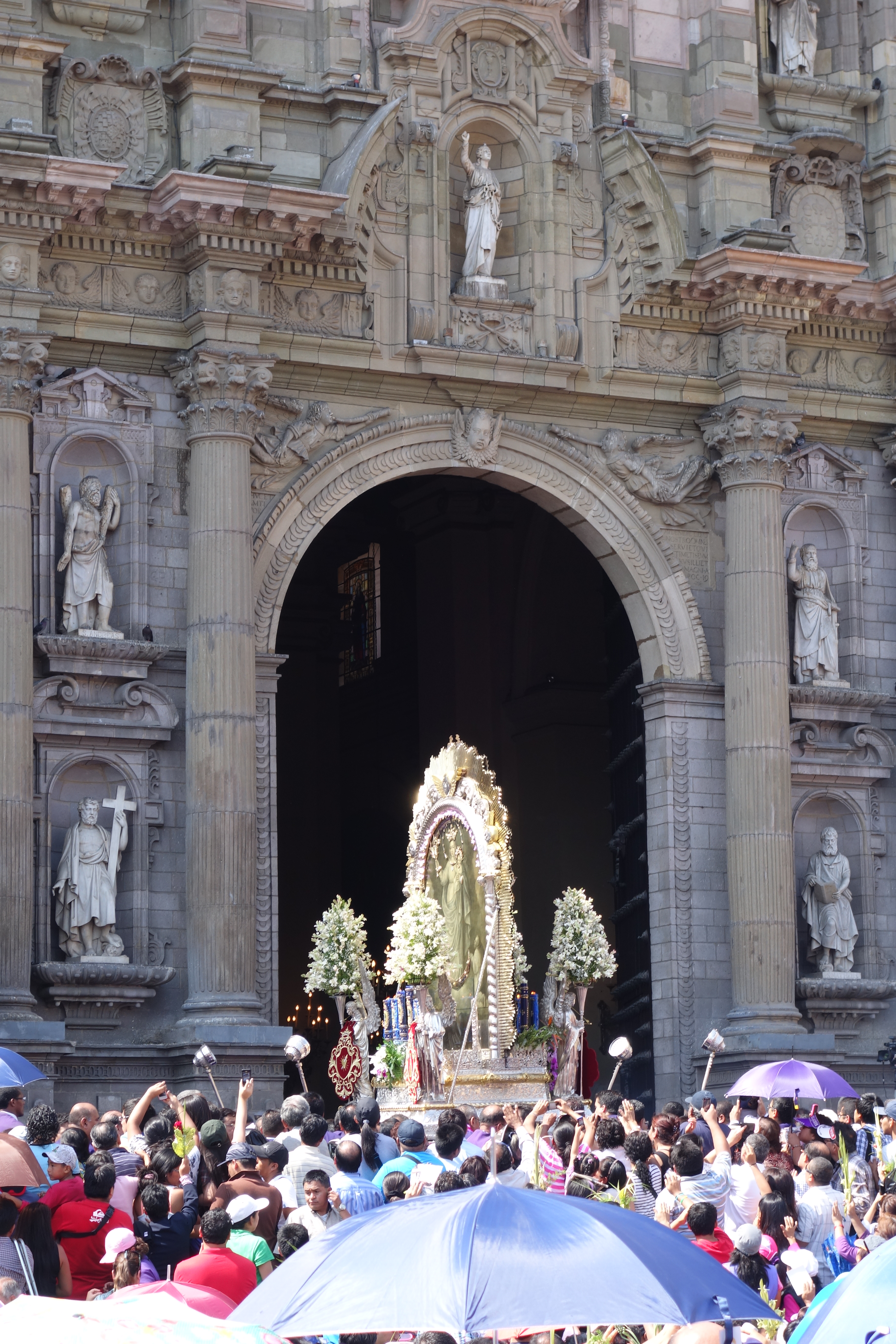 After lunch, we wandered around a bit more and drifted back to the Hotel for a wash with running water and then down to Barranco where, as luck would have it, we discovered a small restaurant with the most amazing tapas, good wine and atmosphere. Suddenly it seemed as if Peru might have some pretty decent grub to accompany the Cusquena. We emptied out of the bar into a night filled with incense. The local chapter of the Brotherhood were hulking a 3 tonne statue of HeyZeus and the Virgin of the Potato on their shoulders down the street. Big heavy set dudes in purple gowns, Ladies in Mantillas walking backwards, an oompah band giving it max and swirling clouds of incense. Fabulous.