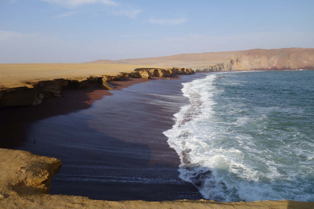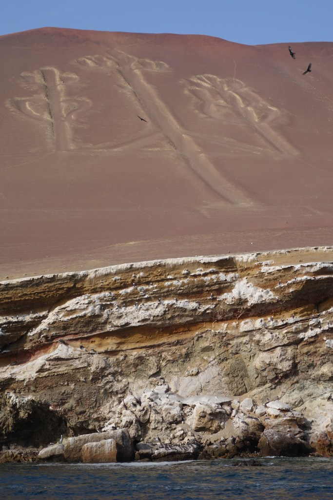 Finally we pull into Paracas. There is a big enough concentration of people here to make it workable. A crappy old village/town but several spanky new hotels. We dump our bags and meet our next guide Roxanne. Her English is almost as good as Rudi’s, but Paracas doesn’t give her much to work with. She takes us out into the desert. It’s a National Park so better protected, no builders’ rubble but the Park Guards have a tendency to go dirt biking when they get bored, so the clean lines of the desert are often disturbed. But it’s still beautiful, we see some lovely coastline, striking red sand beaches and watch Gannets dive bomb shoals of Anchovy. There is a cute little museum explaining the local ecology.