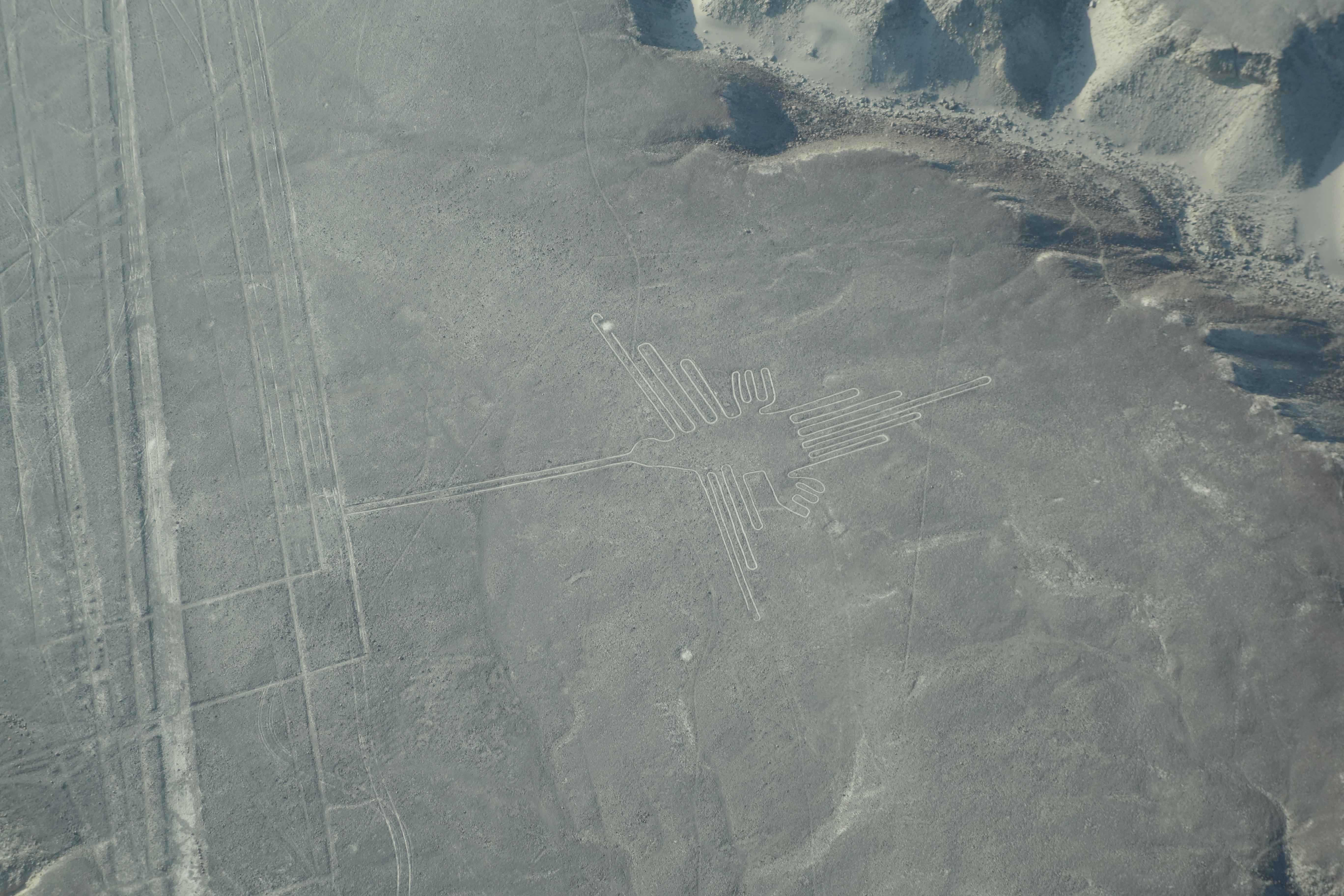 We rumble out and take off. Soon over the desert the Pilot asks us to look right and then banks the plane to almost 90degrees and describes a clockwise circle around a point just below the wing as we all try not to fall out the window. It takes a little while to figure out what you are looking at but, sure enough, there is a Whale marked out on the desert floor. We level off and then the other Pilot takes over and we bank around to describe an anti-clockwise circle before moving on to the Dog, Spaceman, Monkey, Humming bird, Condor, Flamingo, Tree, Hands, Dodo…… Dodo? Seriously? And enough lines, Morse-code messages, flying saucer runways and the like to make your brain spin, if the plane wasn’t already doing that for you. It’s fantastic, in the true sense of the word. Why would they do this.? Theories abound, with the current in favour being that the lines had a religious significance, something to do with ensuring rainfall. Well that’s a pretty broad theory for a civilisation living in a desert.