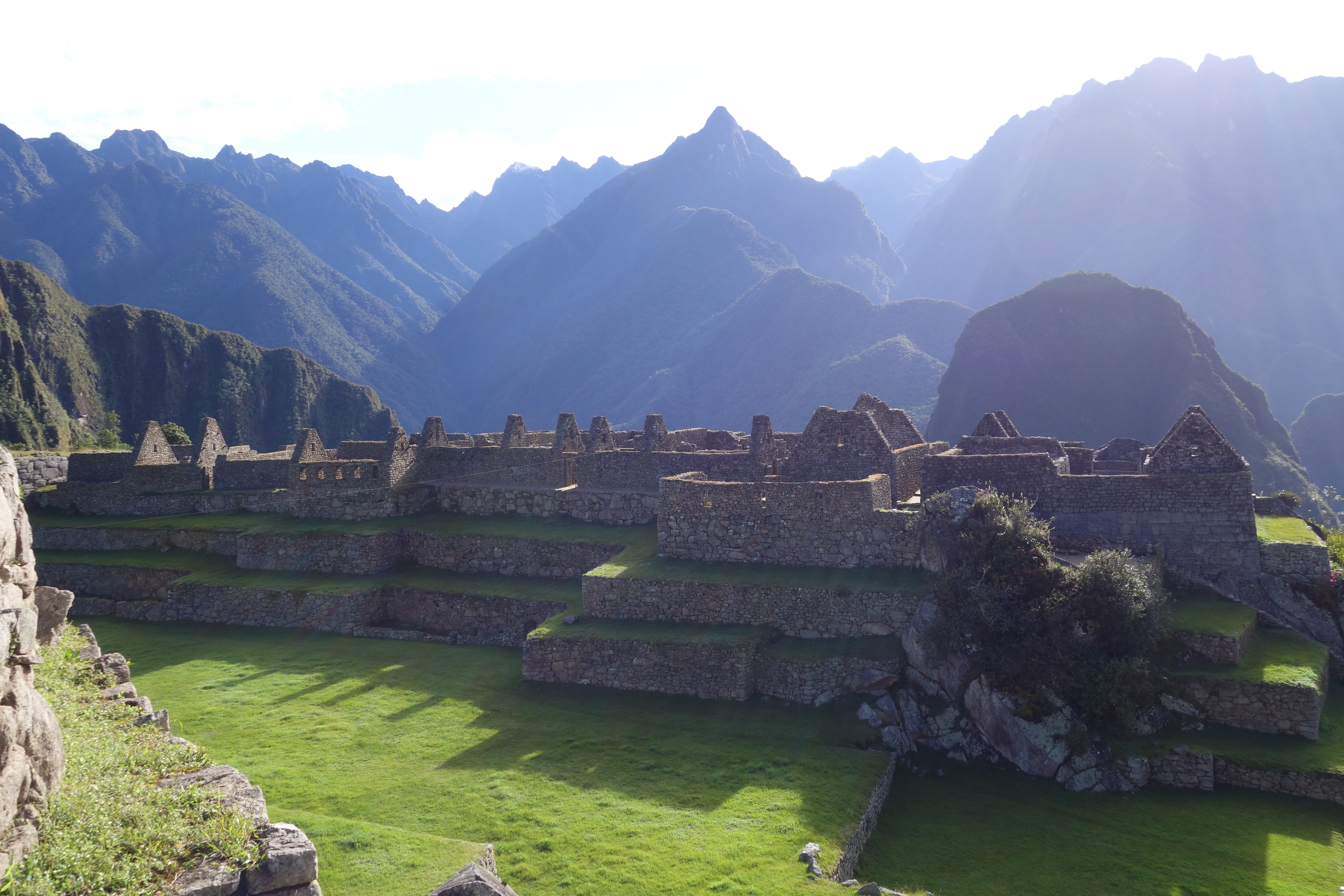 We position ourselves back on our terrace and watch as the sun stumbles up and over the ridge and floods Machu Pichu with warm light. Inspirational.