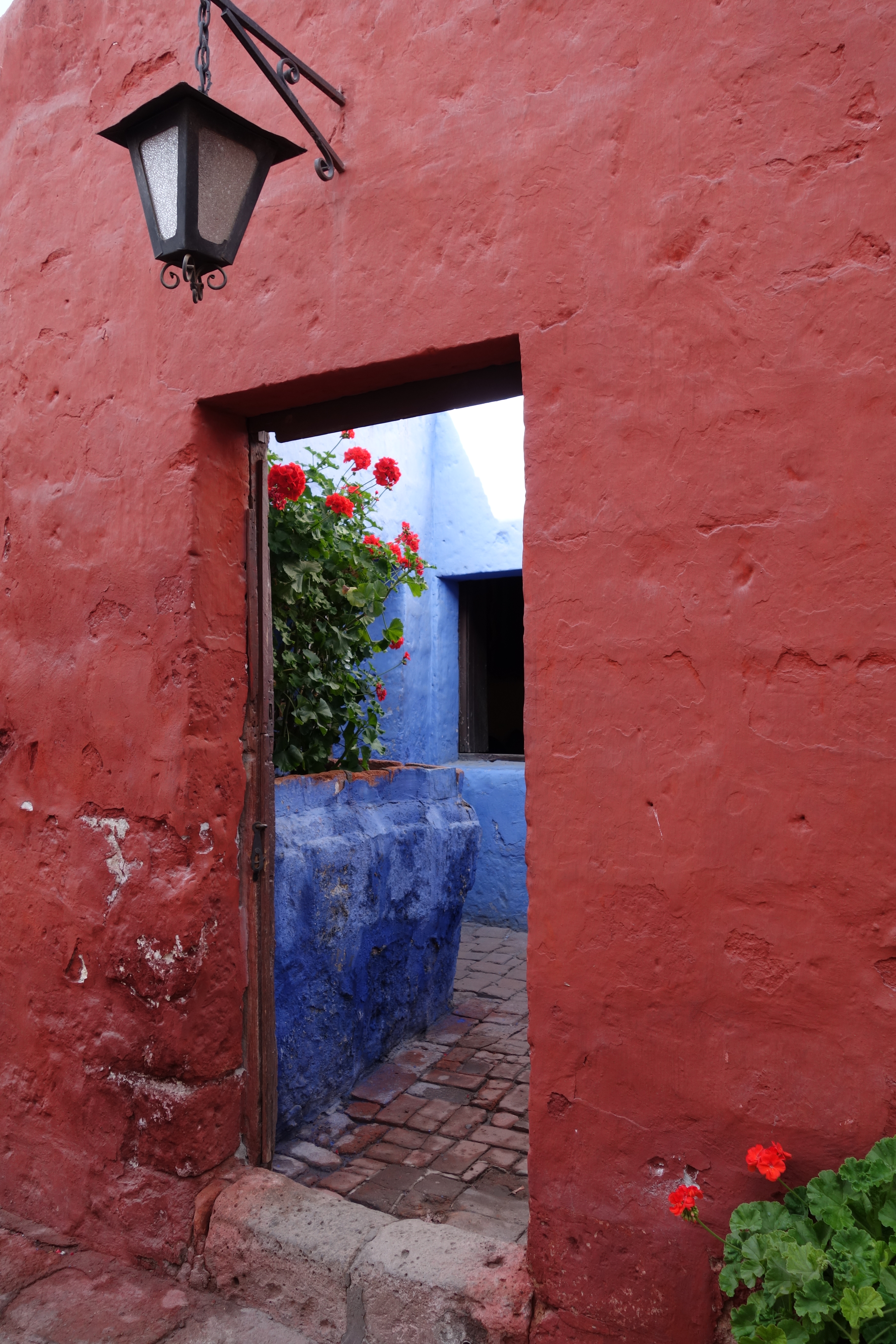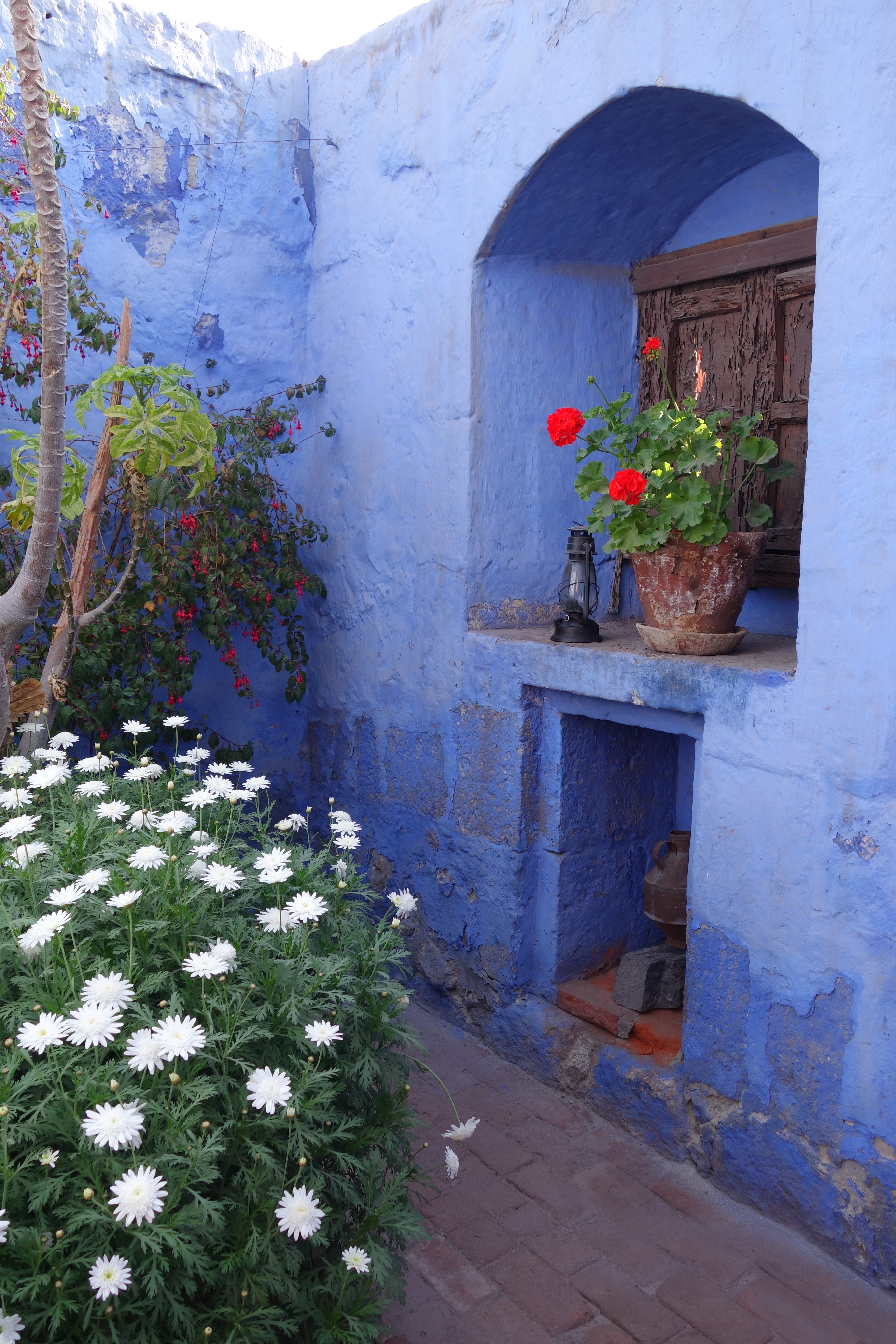 After lunch we visit the Santa Catalina Monastery, which is actually a Nunnery. It is a huge complex of houses, streets and cloisters painted in ochre reds and blues. Flowers everywhere, gorgeous. The Nuns who used to live here came from very rich families. They had their own kitchens and slaves and it seems that, at one point in their history, Life here got so good that the Pope shut them down. One Nun however, is considered a Saint. She entered of her own volition at age 3, was considered to have worked miracles of healing and from age 16 to her death slept on a carpet of metal nails in order to atone for Mankinds’ sins. I guess if you didn’t have Men or TV to cause you pain, you might come up with some weird ways to get your kicks. Bless her.