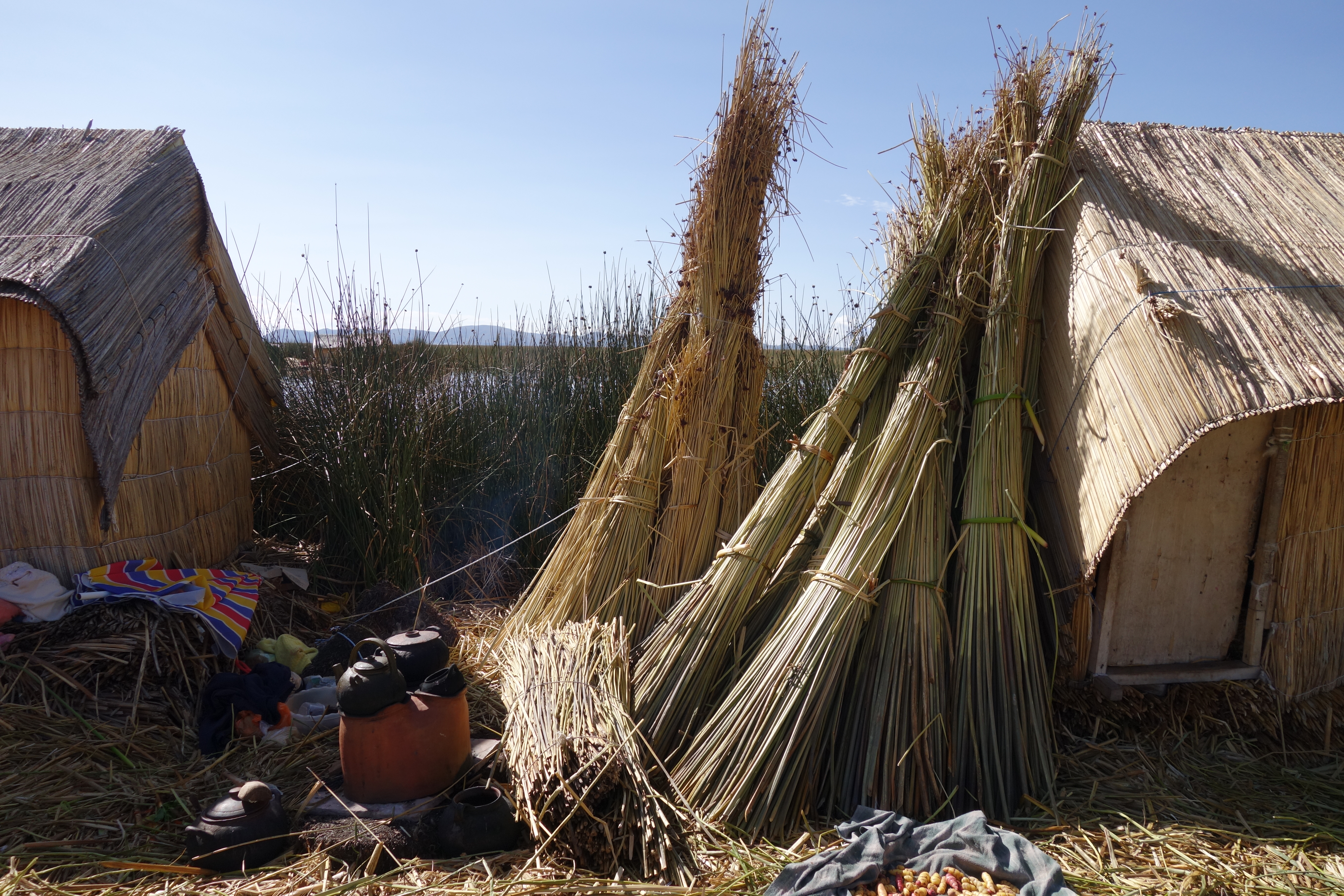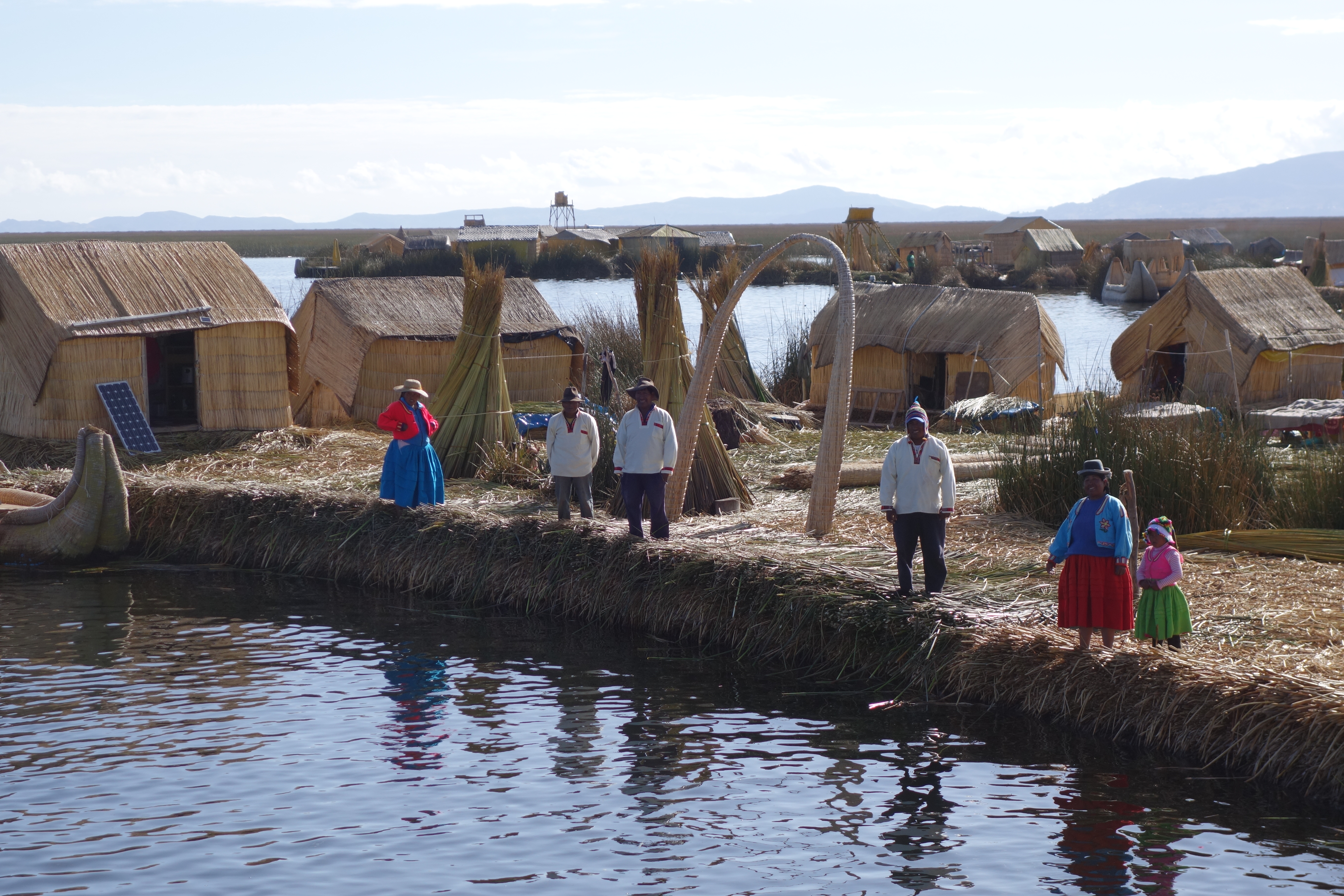 We enter a huge lagoon surrounded by rafts of reeds. Each one has half a dozen small reed huts and a boat made of reeds and a family or three beckoning you onto their raft/island. The families line the edge and sing a song of welcome. We step off the boat and onto the island and immediately get the wobblies. The rafts are huge, very thick and stable but you sink into the surface as you try to waddle across. There is a small garden of flowers, about 6 reed sheds and a big flat stone with a fire on it and breakfast bubbling away. We get a short lecture about life on board, complete with sections through the raft and a reed eating demonstration for anybody wanting to contract bilharzia. Evidently, they have to put down new reeds every 2 weeks, because just below the surface is a manky fermenting mess, but the water surrounding is crystal clear. They chuck nothing in and the toilet is a 5 minute boat paddle through the reeds which are a very efficient filter. Whenever they put down new reeds, they just lift up their houses onto the new layer. A boat takes about a month to build and 3 months to rot away. It’s a busy Life and honestly, if it weren’t for tourists they probably wouldn’t live here any longer. We buy some obligatory stuff that they make, then we have another singsong and then they row us down to the central island where we have an IncaCola. Do you remember American Cream Soda? Only sweeter.