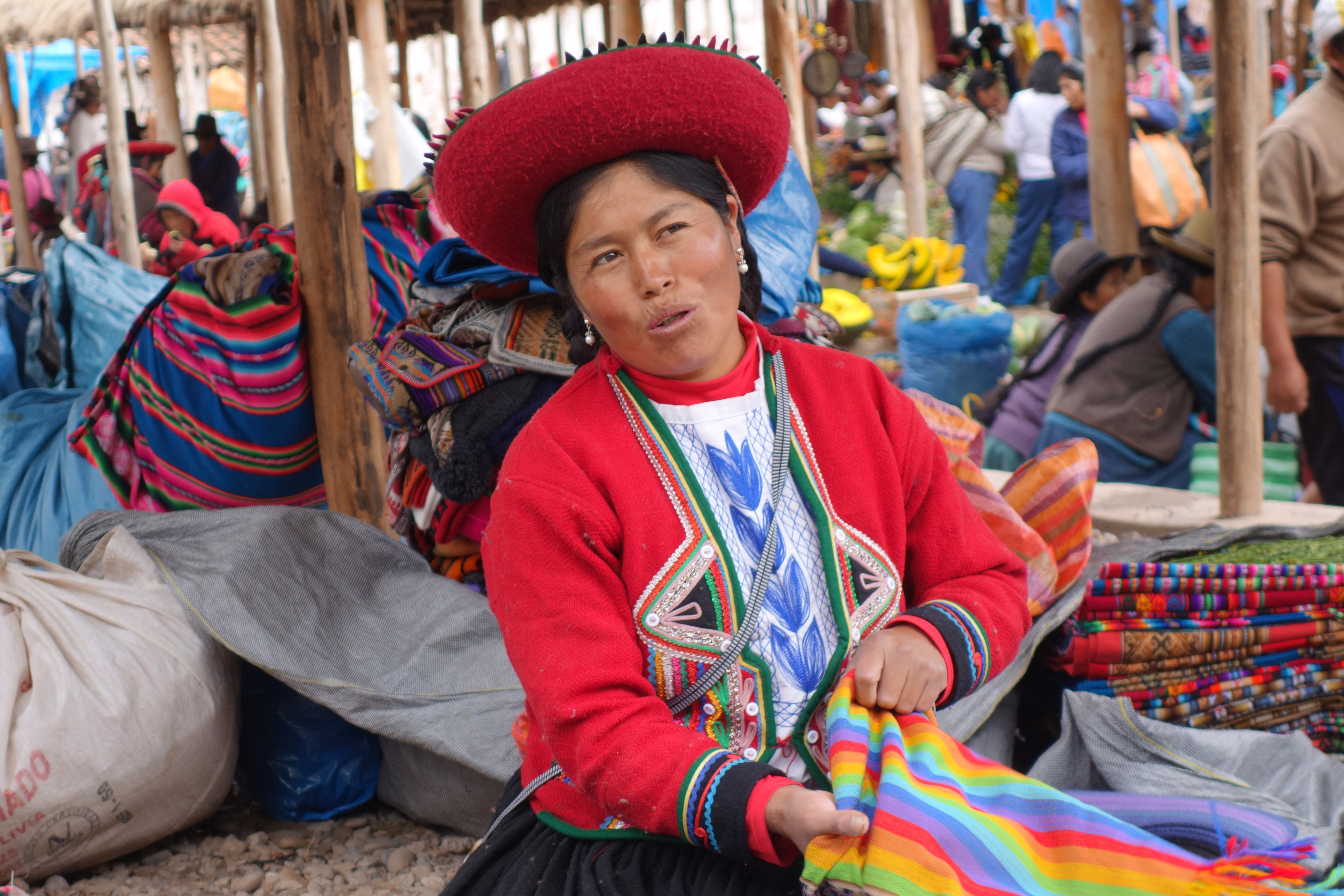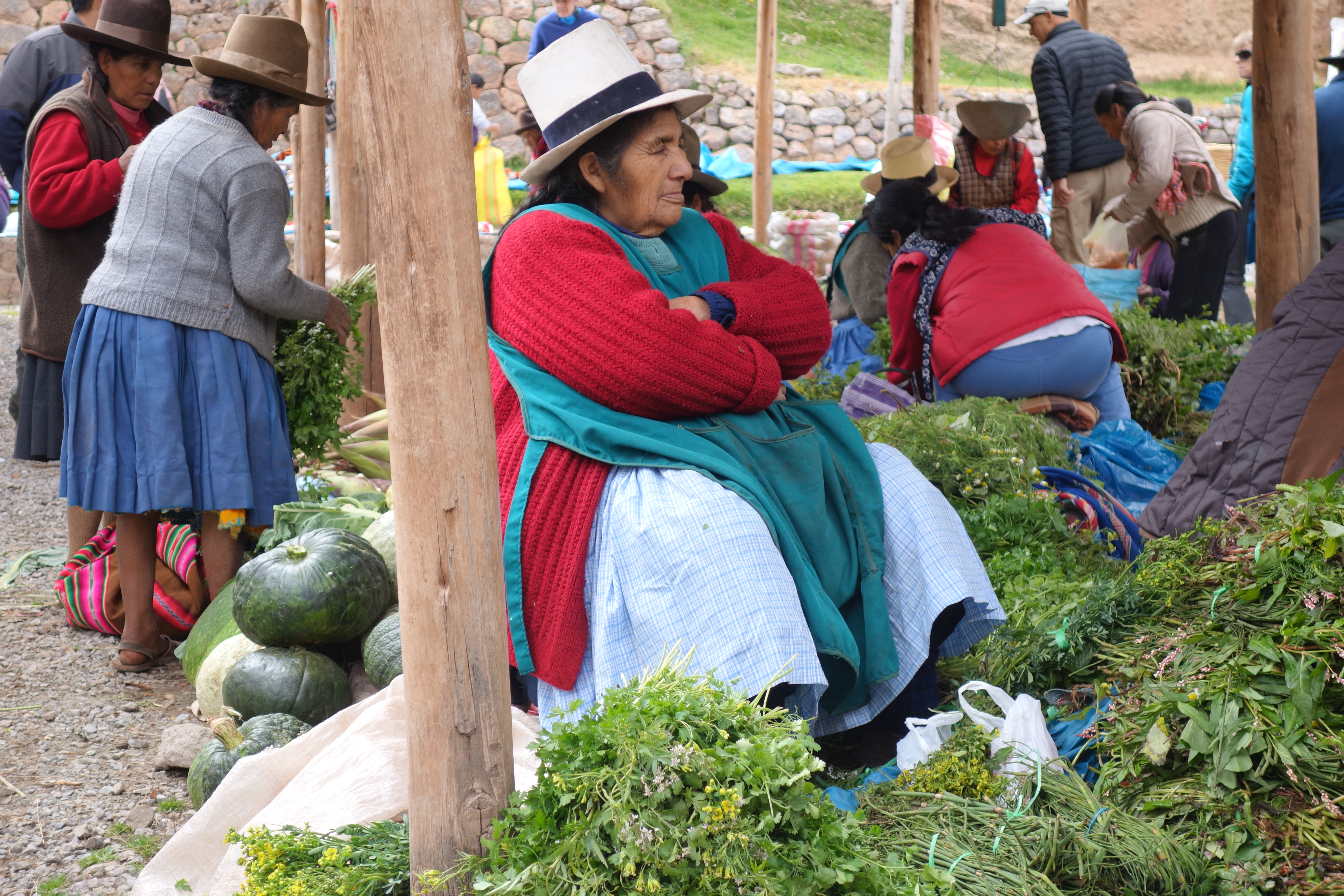 It doesn’t wait long, despite the fact that something brewing from Puno is now causing my insides to jellify and I am somewhat delicate. Our new Guide, Daniel, and our new Driver, William, pick us up early doors and we head off to Chinchero Village. Here there is a fantastic Market with a touristic fringe but a local core, where people from the surrounding highlands come to buy produce brought up from the Sacred Valley. The costumes are varied and fabulous. The smells of herbs, flowers, fruit and vegetables are incredible. There are very few men, maybe they are all down the Taverna, so the ladies do all the buying and selling and we do all the photographing.