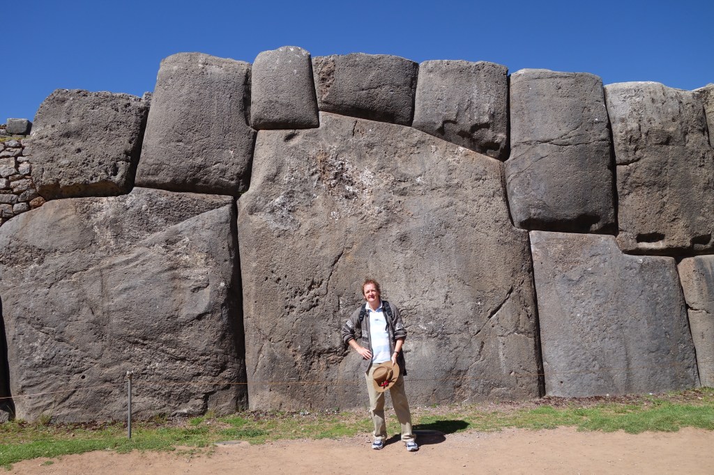 Breakfast on boiled eggs and we drive just above the city to Sacsayhuaman. At this point I decide that, even if I don’t make it to Machu Pichu, I will not be disappointed. I want to be an Inca when I grow up. Failing that, in my next Life. Sacsayhuaman was a temple dedicated to the Sun and Moon but laid out to please the God of Thunder. The base plan is a series of stacked lightning bolts zapping across the ground, they are built from enormous stones, each tailored to fit perfectly on to the ones below.