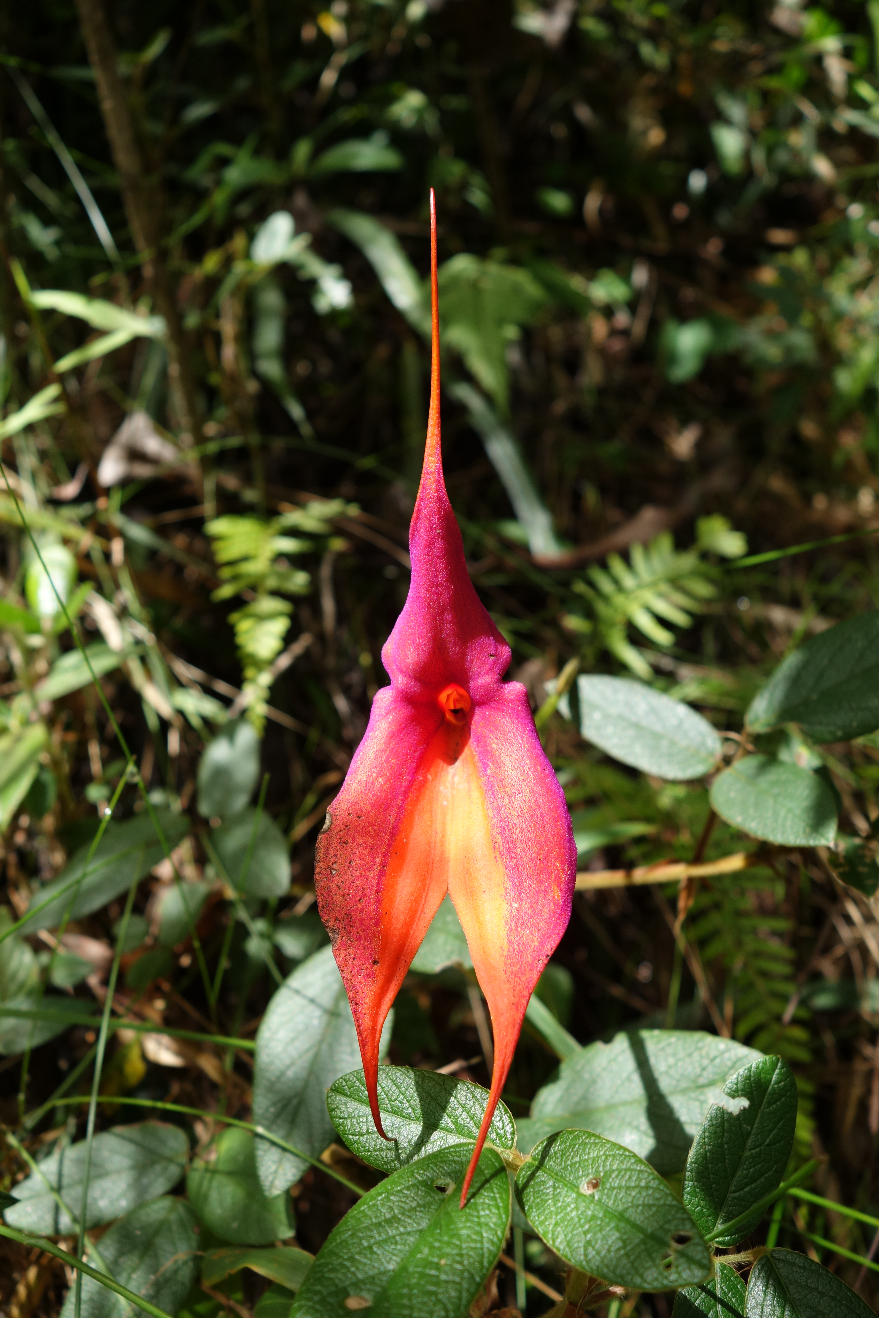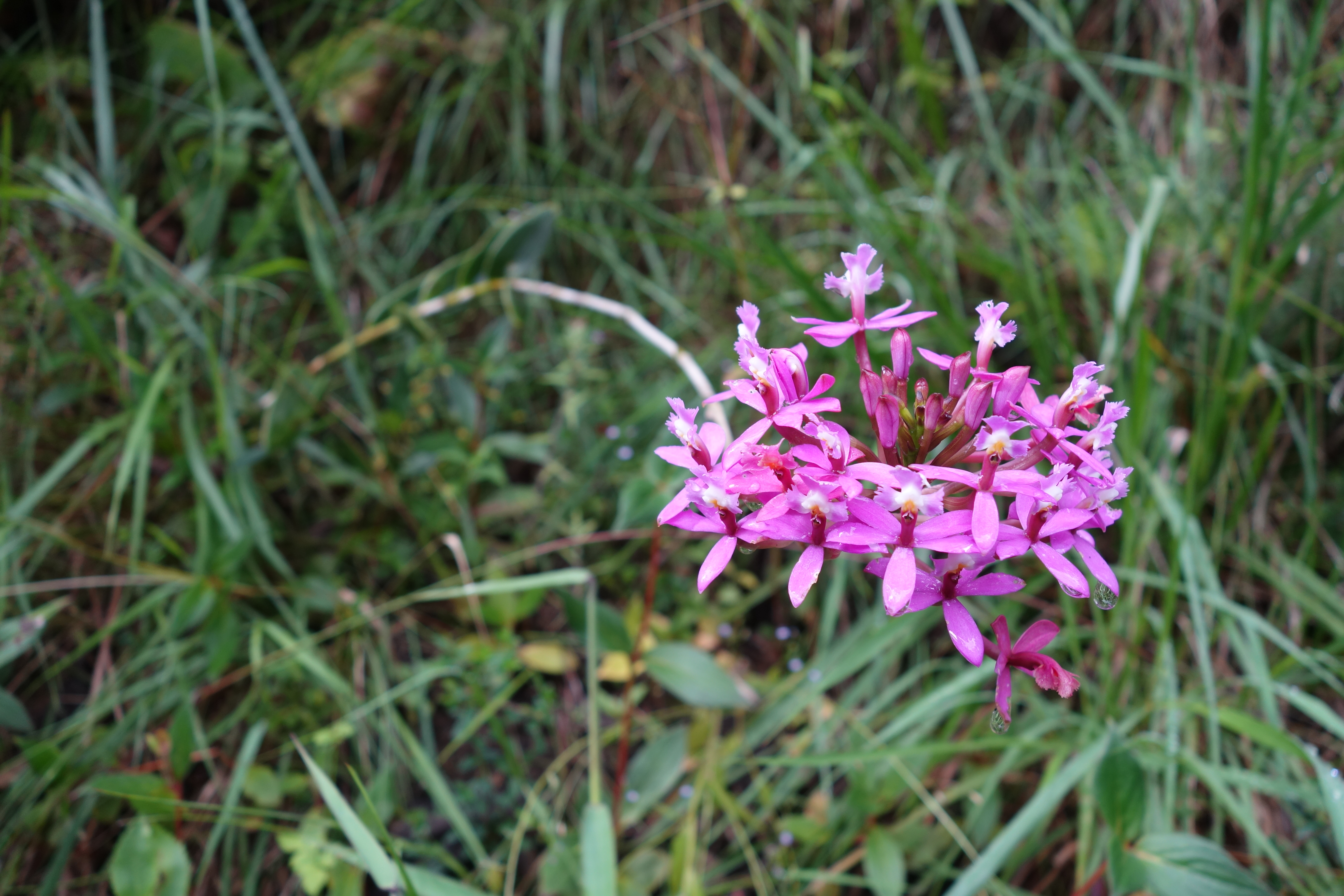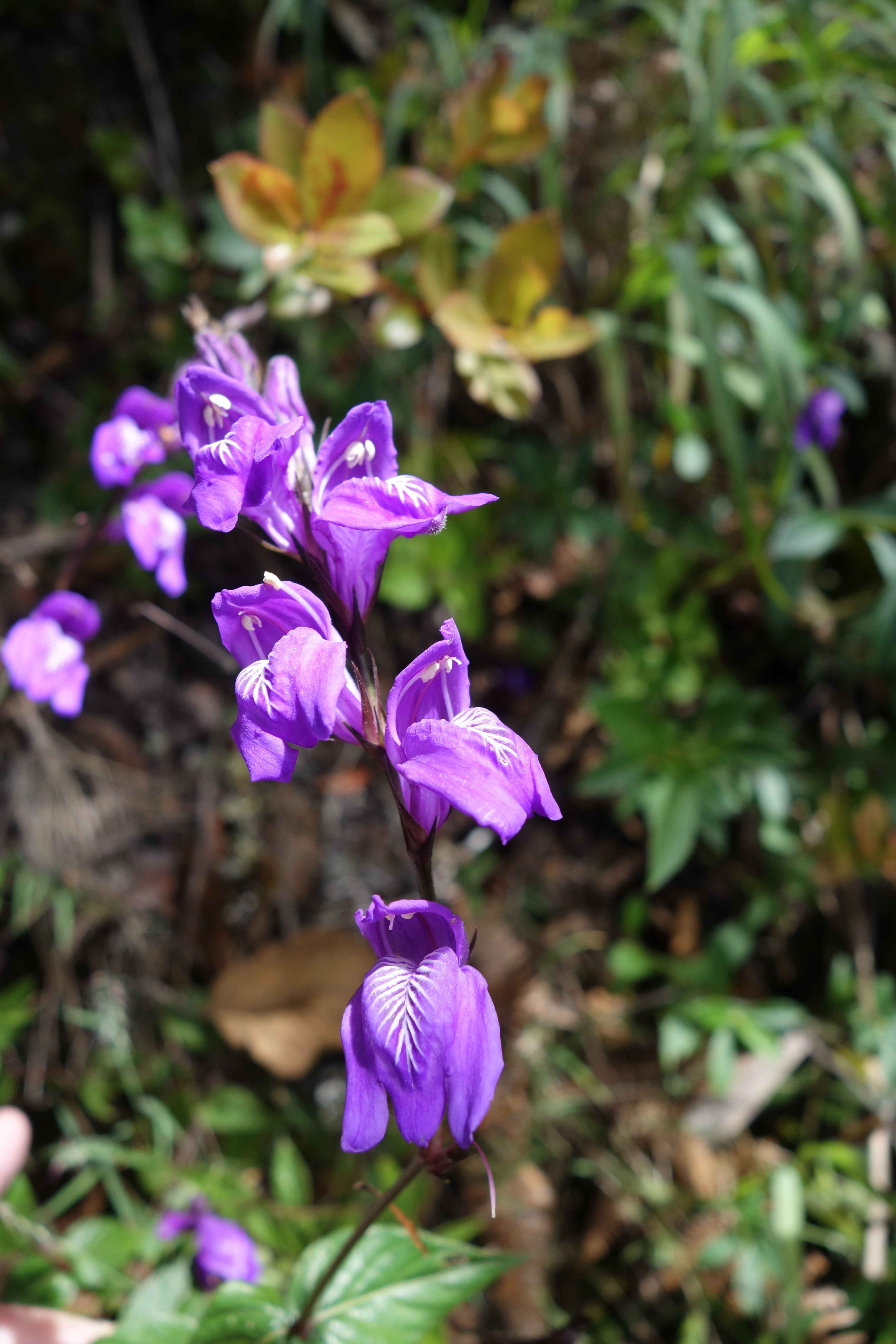 Technically, we were at a place called Chachabamba. But to get there, we had to cross the swaying bridge and so we Samba’d across the Urabamba to Chachabamba although, in Liz’s case it was more of a hysterical dash. We were on the last stage of the Inca Trail and, at a small government lodge, we had to sign in with passports. A couple of groups from earlier trains had already registered but during the days hike we only saw them to overtake. A little old Lady was there to sell us long walking poles with cloth willy-warmers over the end, these hook over your wrist and were the best HK$8 I spent the whole holiday. The trail climbs from 2,100m to 2,700m (8,860ft.) at Winayhuayna, passing through cloud forest, scrub and more forest. The sun came out, but we were pleasantly cool in the shade. Wildflowers were everywhere. Orchids of every colour.