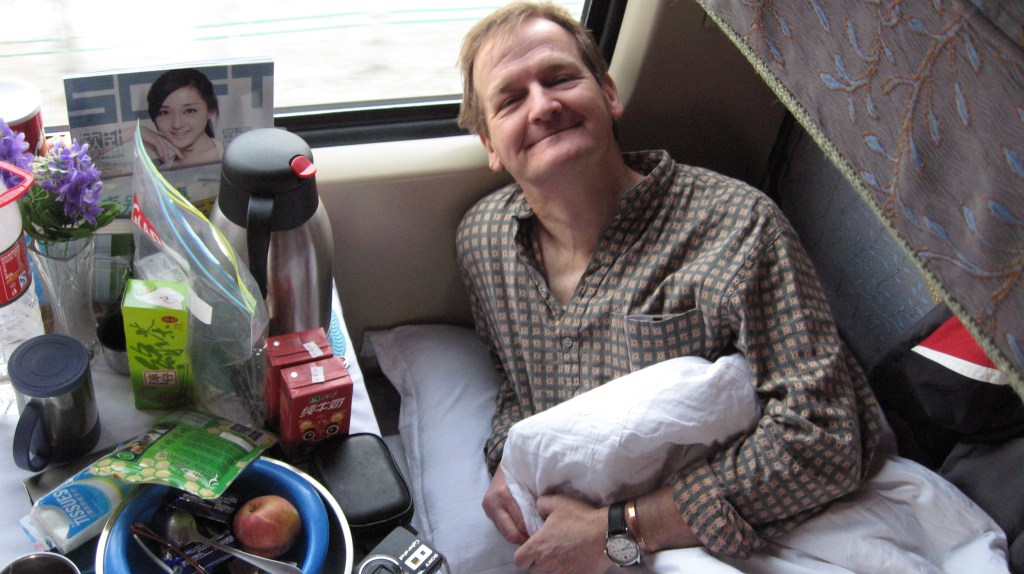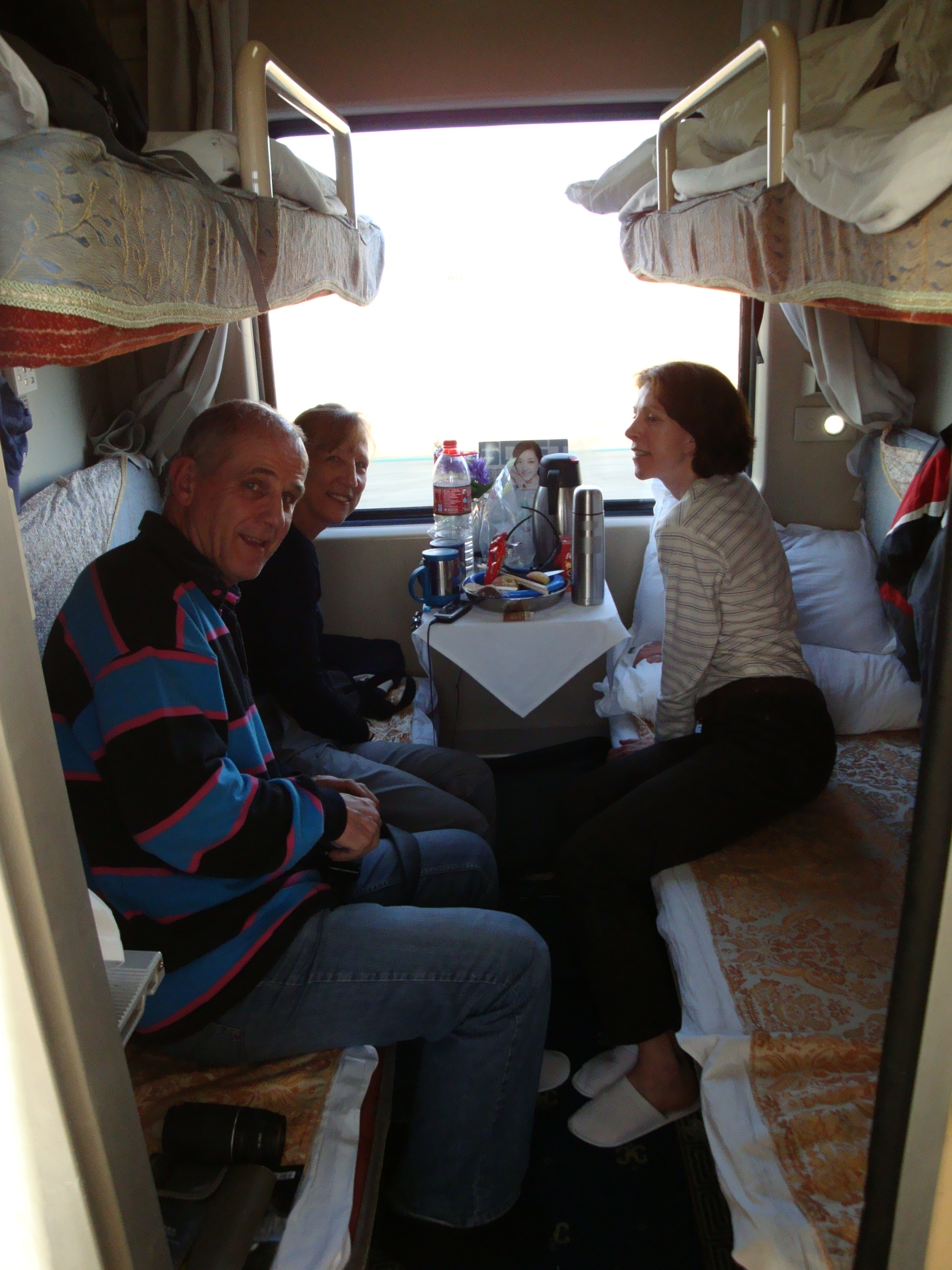 But we were in the posh ‘Soft Sleeper’ carriage. In theory there was no smoking, but the Chinese have a very liberal interpretation of such strictures. Behind us was the ‘Hard Sleeper’, 6 bunks in the same amount of space and, up the front, beyond the dining car, were the seats. 44 hours in a seat with everybody hoiking and smoking continually.