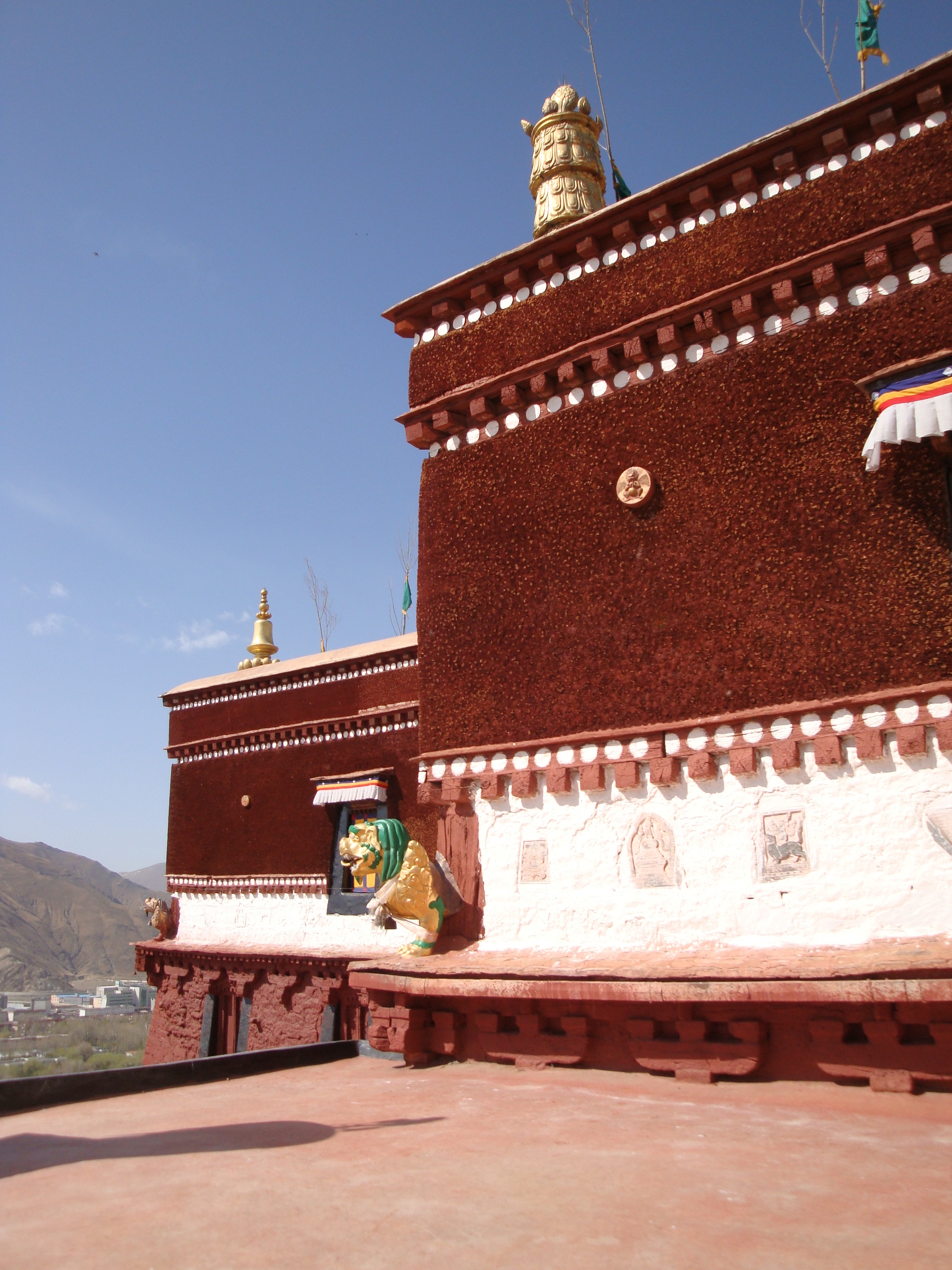 The next day, we went to see the Potala. This is a truly superb building. The Chinese have done their best to spoil it, surrounding it with radio masts, military observation points and a huge Tiananmen Square complete with obscene memorial to the Liberation of the Serfs. Okay guys, we get the point. The Serfs needed to be liberated. Kudos. But nobody needs this kind of Fascist memorabilia. Nobody photographs this wasteland, not with the Potala next to it.