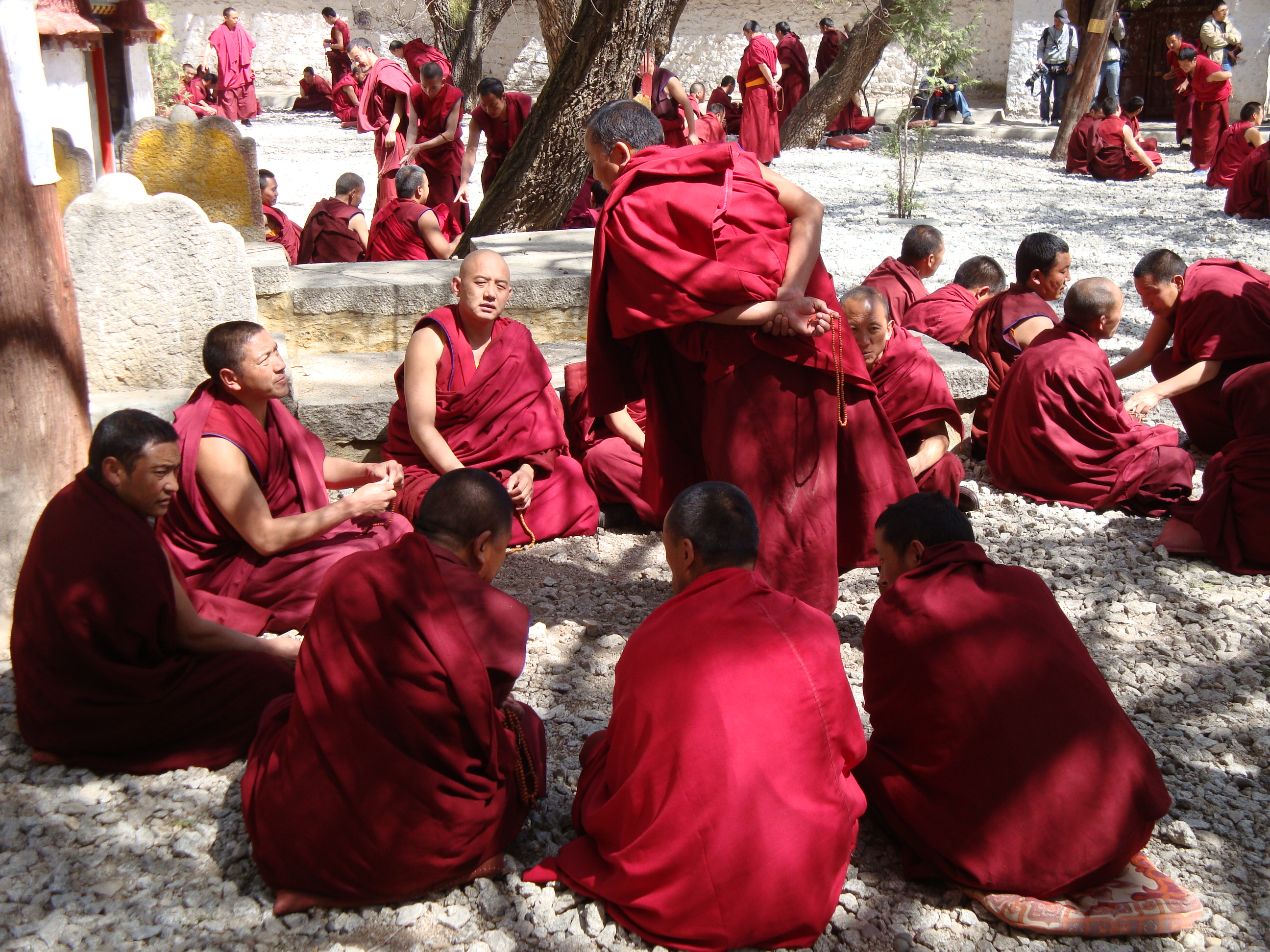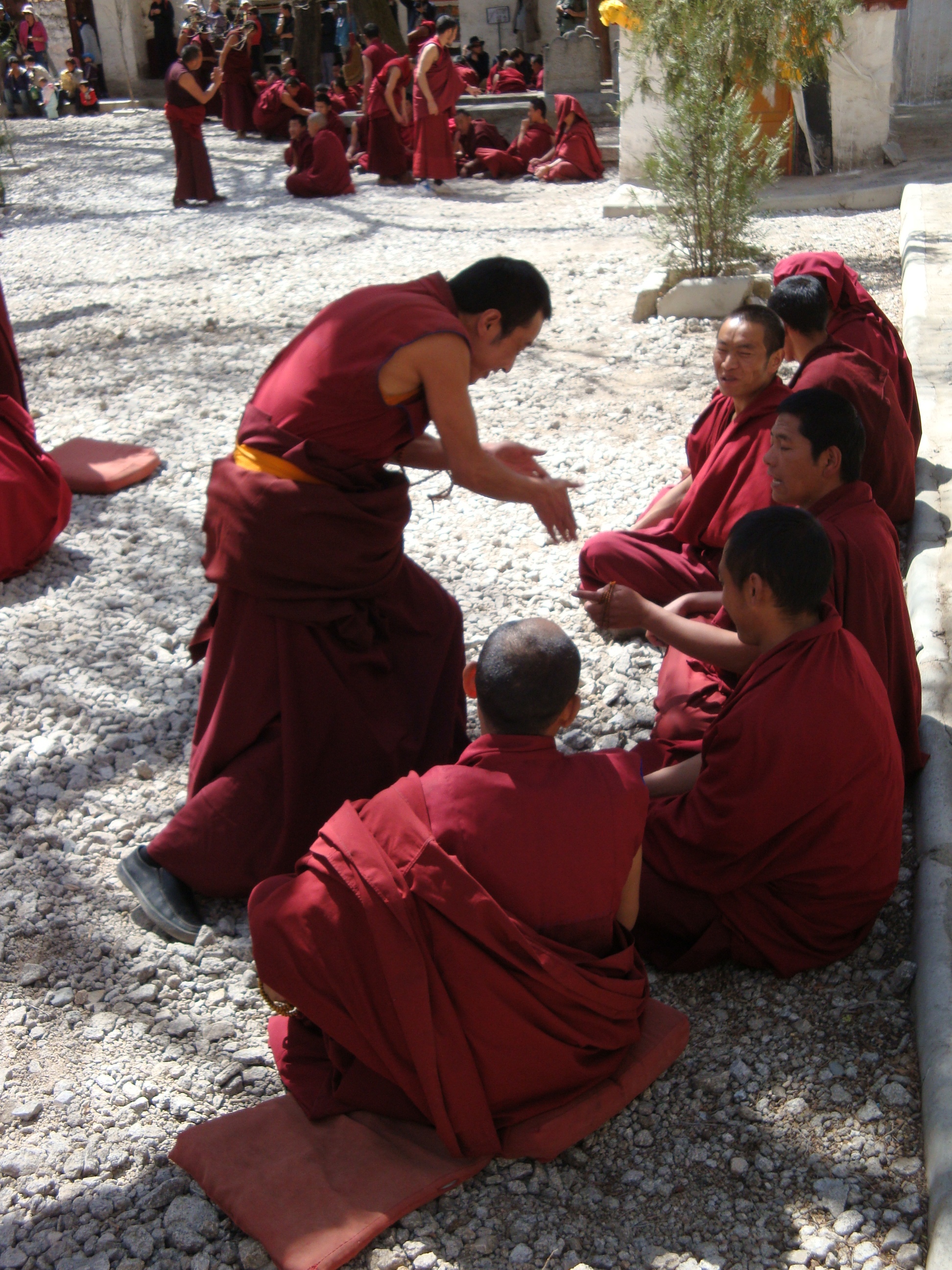 After Lunch we went to the Drepang Monastery (Lots of Buddha’s) but in the afternoon it gets really hoppin’. The monks all study theology and Buddha’s teachings in the morning and then after lunch and a period of contemplation (Meditazionzzzzzz..zz..zz) they gather together in this courtyard to debate. It’s really wild. They sit around in groups. One guy within each group will stand up and posit a question based on today’s teachings and the others have to answer back. If the answer is good, then Karma to you. If the answer is not right, then the standee has to yelp, clap his hands, stamp and push that devilishly wrong answer back into Hell where it came from. Either there were a lot of wrong answers or these guys just enjoy letting off steam. It was a lot of fun in there.