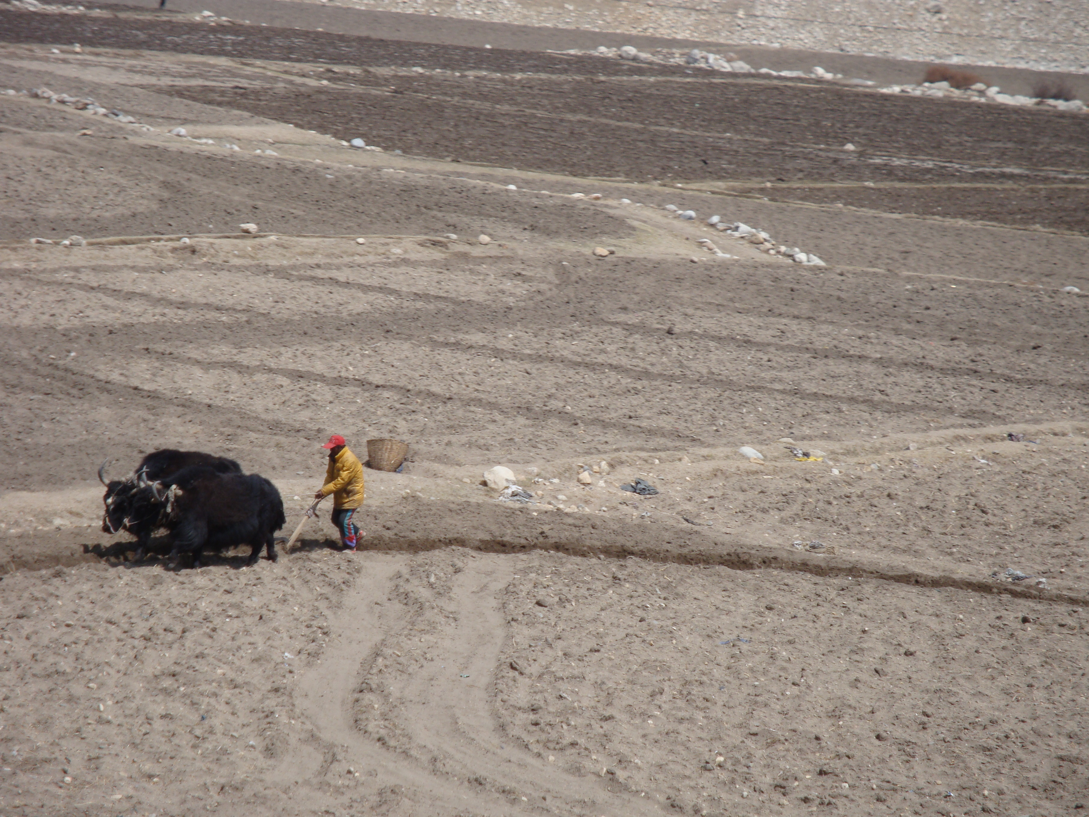 The train passed through a few gorges, houses stood a little taller, people were ploughing dirt with Yaks. Technically, I don’t know if you can refer to this stuff as ‘soil’. It’s just dirt. Sort of a cross between crushed rock and cement.