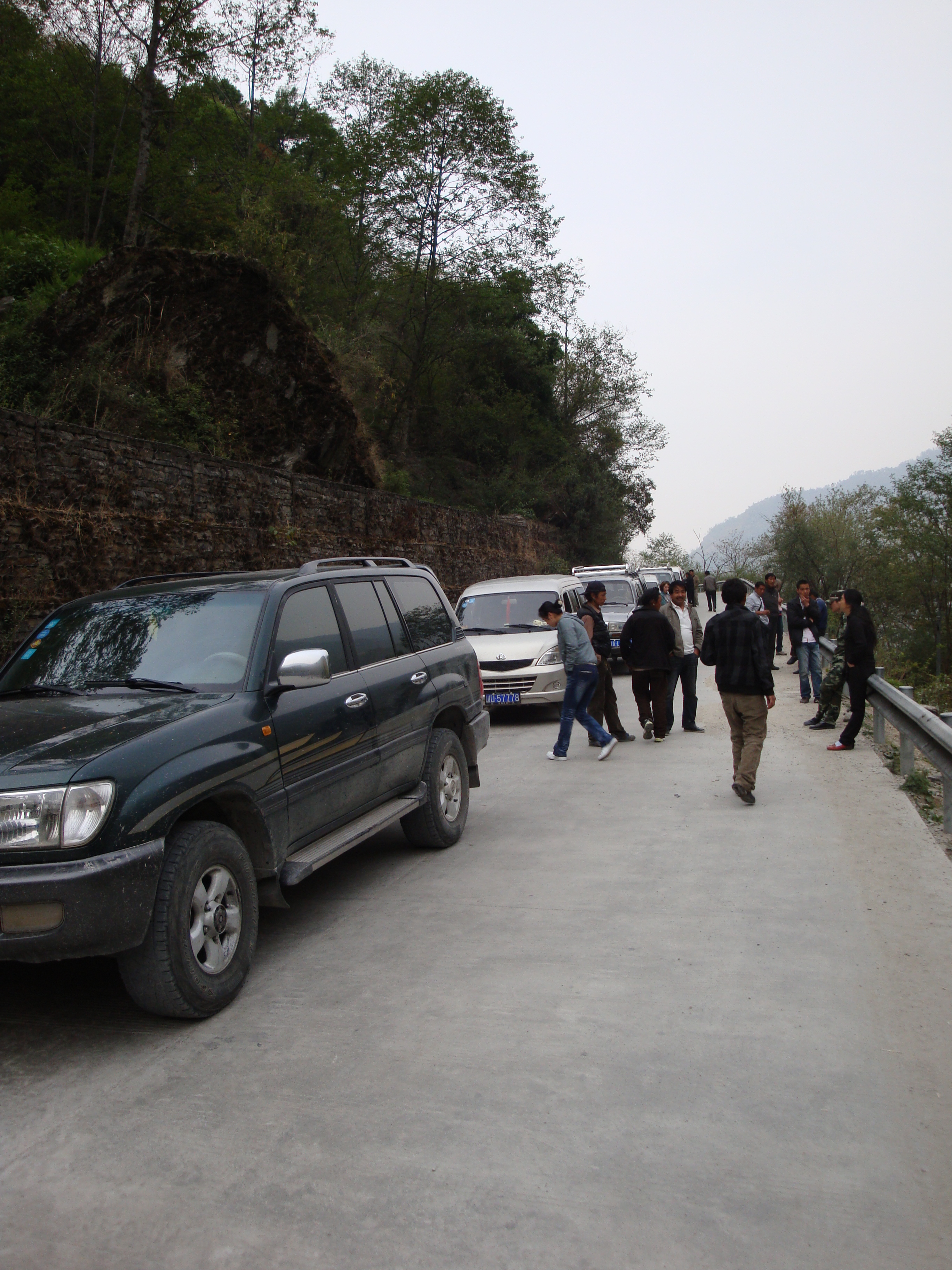 Finally the road starts to plummet into a narrow gorge and at this point it just disappears. The last 10K into Zhangmu you are suddenly aware of trees, low cloud, waterfalls and the fact that there are overloaded trucks grinding up the donkey track that you are trying to descend. You come into Zhangmu which is just one street about 2K long, zig-zagging down the side of the gorge. Blocks of ugly flats have been superglued onto the hillside. Trucks and cars have been parked everywhere, so that passage depends on being able to batter your way through.