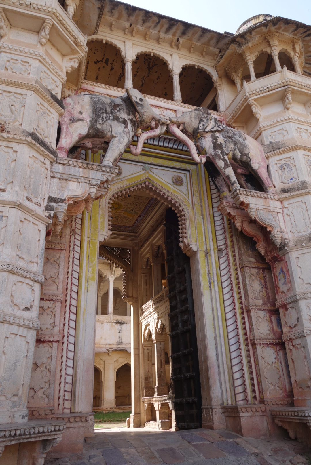 Then on to Ranakpur, the most spectacular of Jain Temples. Only we didn’t think it was, having seen the incredible temple in Mt. Abu, 30 years ago. Maybe it’s a different era for us, but we found Abu to be beautiful and ethereal. This one is big. Maybe it’s the 30 years but we found Abu to be spiritual and calm. This one is commercial and noisy. We couldn’t enter or even photograph the inner sanctum, okay I get that, but the locals were answering their mobiles in there. Maybe it was God calling, telling them that “I just gotta see Jain”. Anyway Dori and Liz got to crawl under the belly of an elephant so we are at least assured of a place in Nirvana. Whoopdedoo.