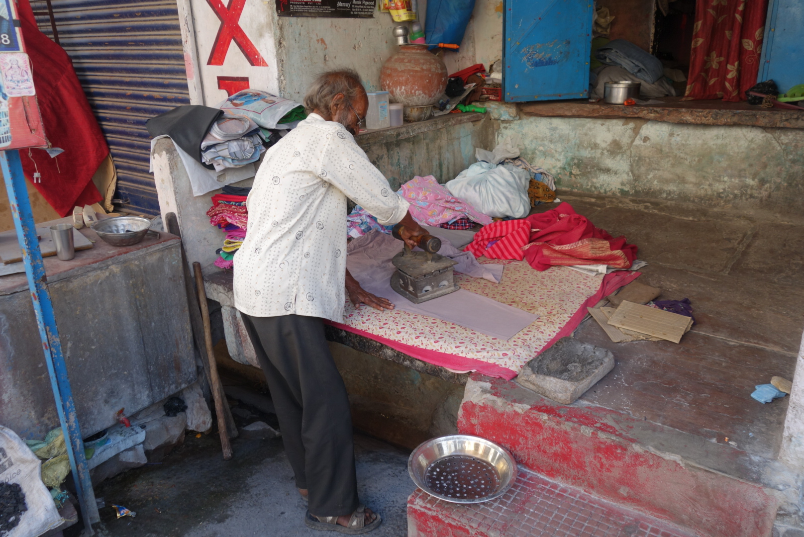 Even lazier and no guide. We went to the Temple for morning sing-song which was really nice, then shopped. Dori bought fabric, but then we couldn’t find a tailor willing to take on the commission so, eventually, the shopkeeper called for his pal who assured us that a blouse in 3 hours was no problem. Meanwhile, the old guy on the stairs next door, offered to replace the broken zip in my shorts for 50P.