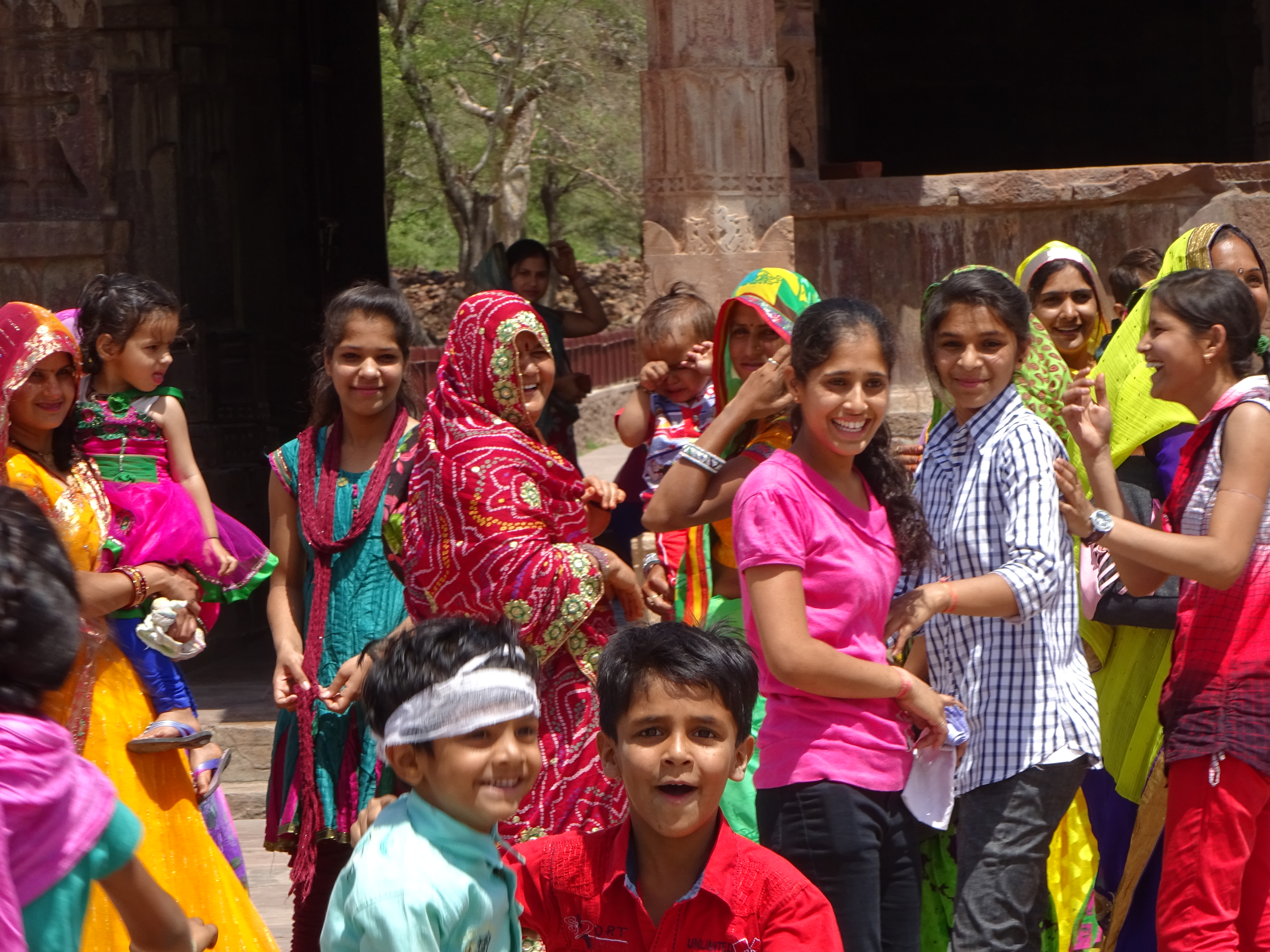 Breakfast on board, Ramdev loaded up the motor and we manoeuvred back out of the town and along the road of holes towards Bassi. Seemingly it was a Festival day, but when is it ever not in India? He pulled up at some Temple or other that wasn’t on our itinerary but which turned out to be quite pretty. Obviously not on the main tourist route because the locals treated us like Bollywood Stars. Selfies all over the shop. There was also the obligatory loiterer. “Look sahb, very disgusting carvings of Rajah and Dancing Girl.” They say that it’s to do with cleansing your mind before you enter. Dump all the dirty thoughts on the way in, but have you ever noticed how many of these guys limp? eh? eh?