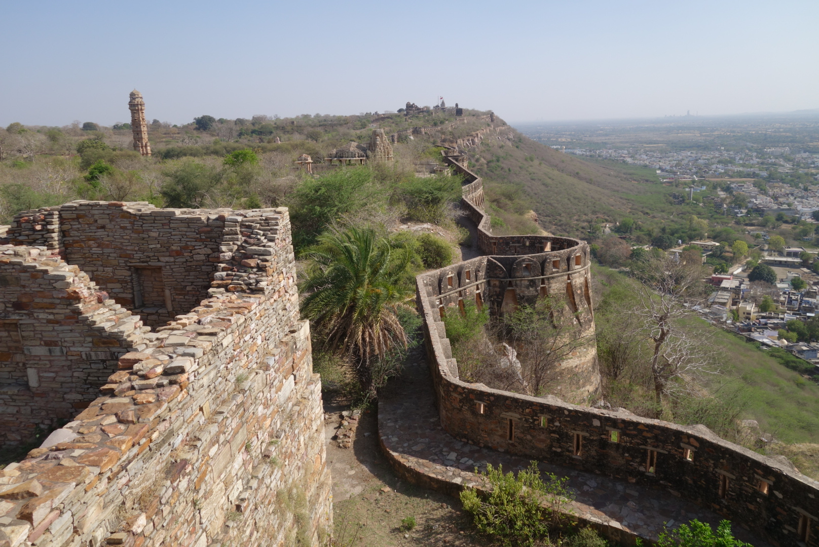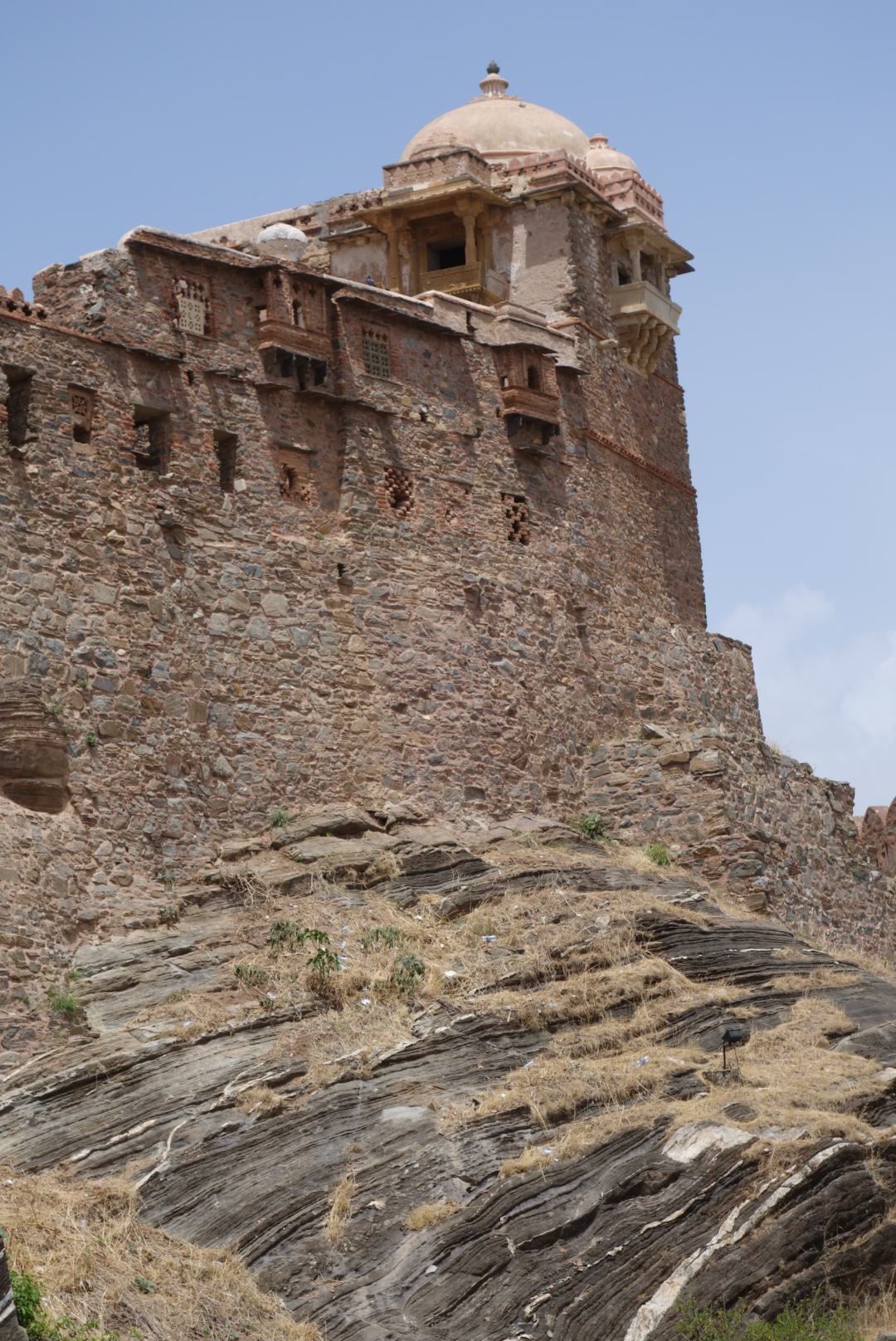 Eventually, we arrive at Kumbhalgarh, which sounds like my tummy feels, but is in fact the biggest Fort in Rajasthan and, at 38 kilometres, the second longest wall in the World, second to the GWoC. There are over 360 temples inside the walls and enough thorn bushes to cover Wales. There is something I am not getting here and, once again, I find myself asking, “Why?” They tell me that it only fell to seige one time and then only to the combined forces of Akbar, Amer, Marwar and Gujarat, but this time it wasn’t even over a shag. They must have really coveted those thorn bushes. Having said that, it is pretty awesome, the scale of the wall and gates and the fort atop the hillside and we clamber all over it.