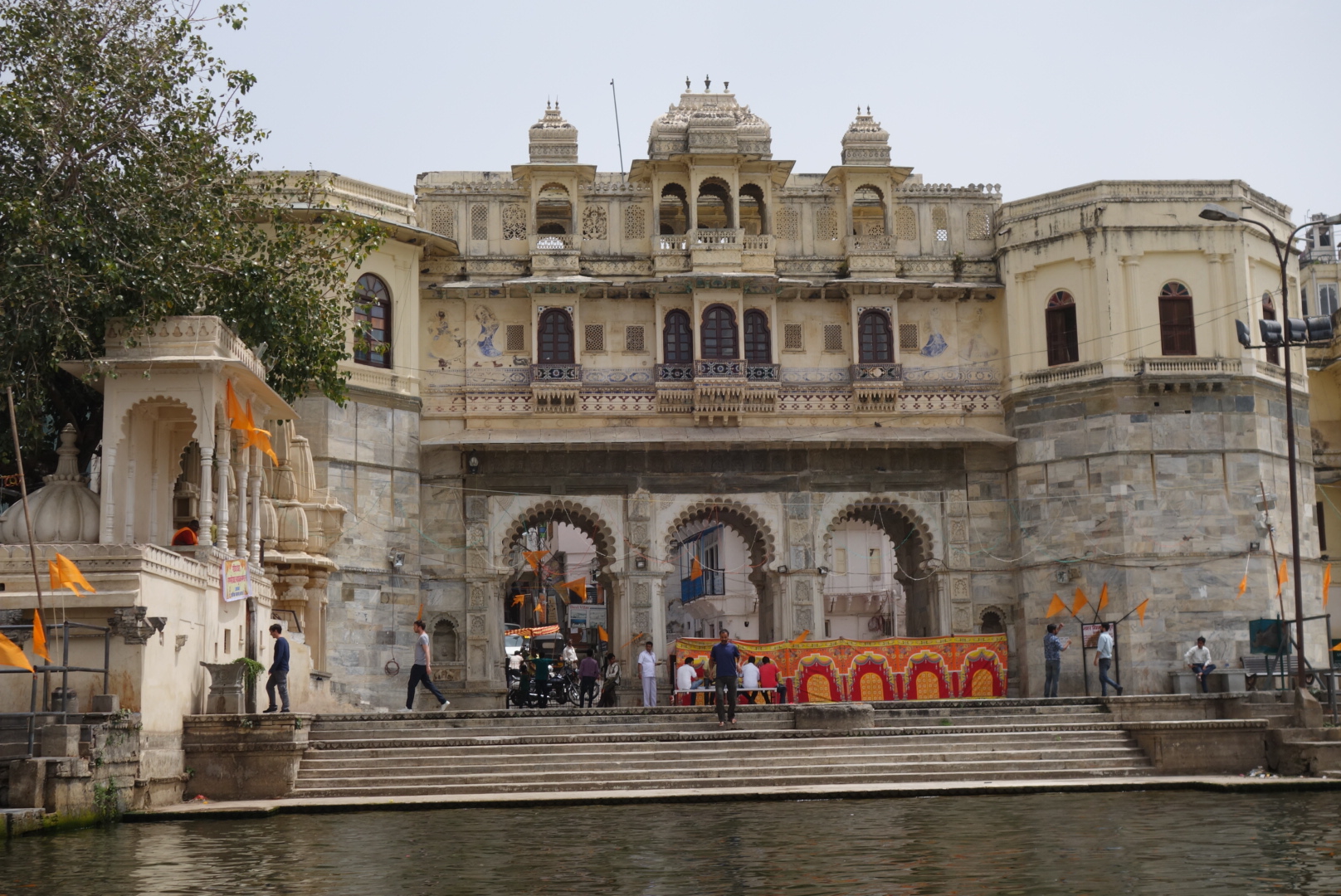 Umar is fit, handsome and supremely cocky and, as we wind through the narrow streets, it takes us less than a heartbeat to hear about his girlfriend from Crawley and his wife and 2 kids in Udaipur. We are booked onto a Lake tour, which consists of a 2Hp outboard motor, pushing a barge full of overstuffed locals, stuffed into manky orange lifejackets. It’s like one of those dishes where they stuff a quail in a duck, in a chicken, in a swan. Only a lot less appetising. Should a goldfish hiccup so much as ripple the surface – expect mass panic. But it sufficed to see the views and they are beautiful.