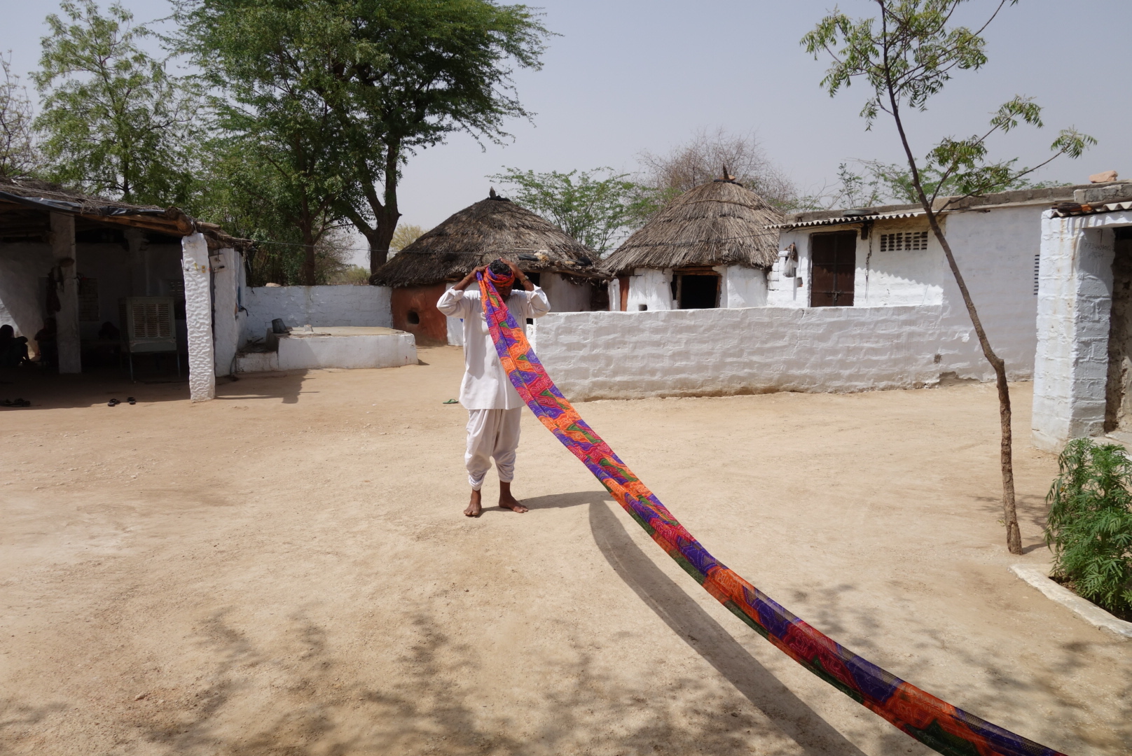 The sun rises to burn off the morning mist from the Lake and after a recuperative breakfast, we rumble along roads made from the left-over potholes from Bundi. The Landscape is more intimate, small hills and valleys with colourful villages dotted around. Oxen plod around the Persian wheels, lifting well water to irrigate the crops. For a country with so much wind and situated along the Great Silk Road, with access to Greece and Turkey, how come they never figured out the windmill? And with wind in mind, we are now into Day 4 of our nothing but curry diet, the endless supply of beans, chickpeas, millet, onions, cauliflower and more beans is having the inevitable consequence on my digestive system. Every time the vehicle stops, I leap out and distance myself from my fellow travellers pointing towards tractors, pigs, cows, ducks that have been stepped upon and aeroplanes breaking the sonic barrier. It’s a rumbling, tumbling, wall of sound which almost lifts me out of my shoes. I have to make sure my laces are tied.