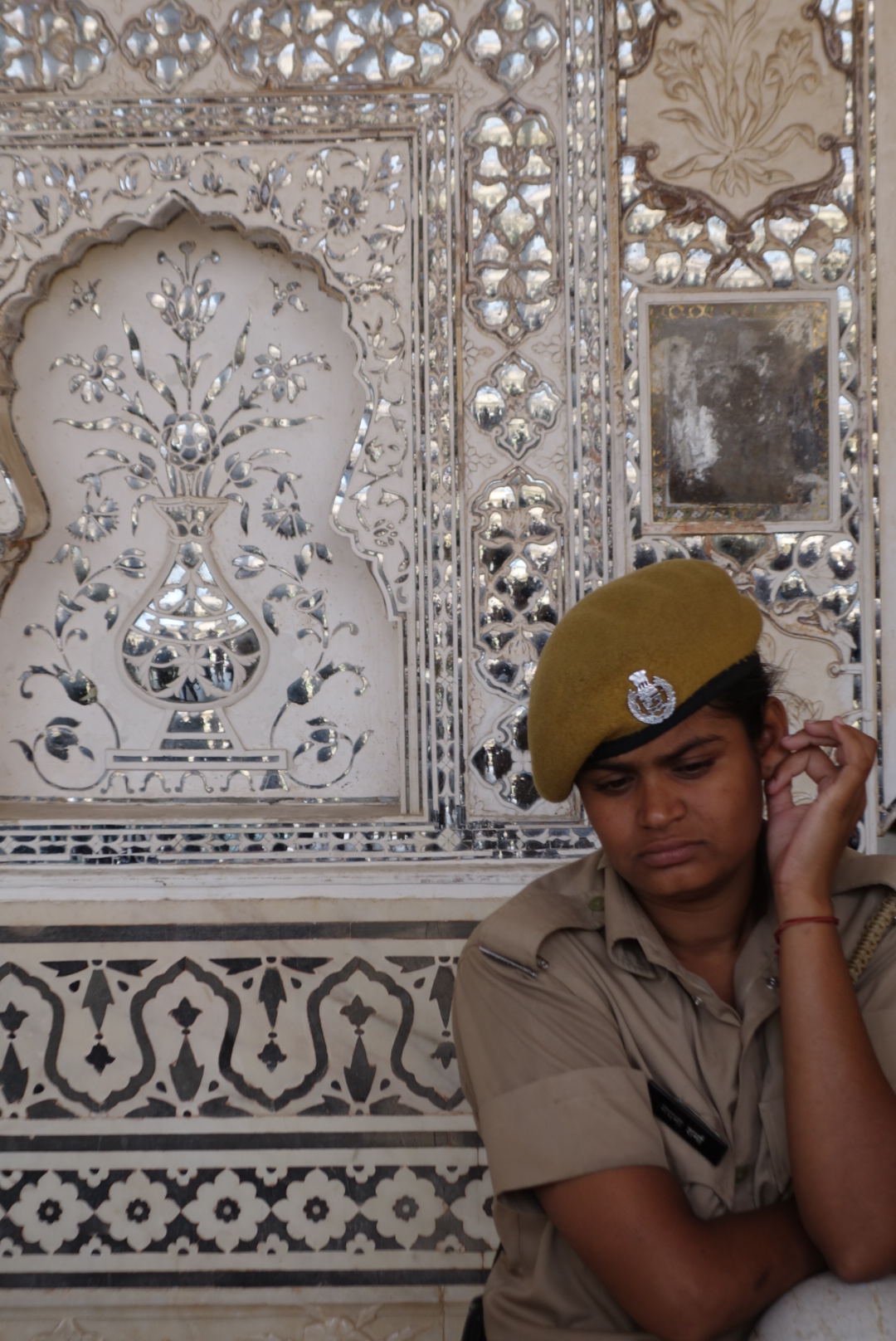 Inside, the Fort is majestic, but the main attraction are the mirrored rooms, where the walls are set with semi-precious stones in beautiful designs. Still gorgeous despite the crowds and the barriers to prevent damage. We saw these 30 years ago, when there was hardly anybody there and you could stroke the walls, but I would rather preserve them than stroke them, so no complaints.