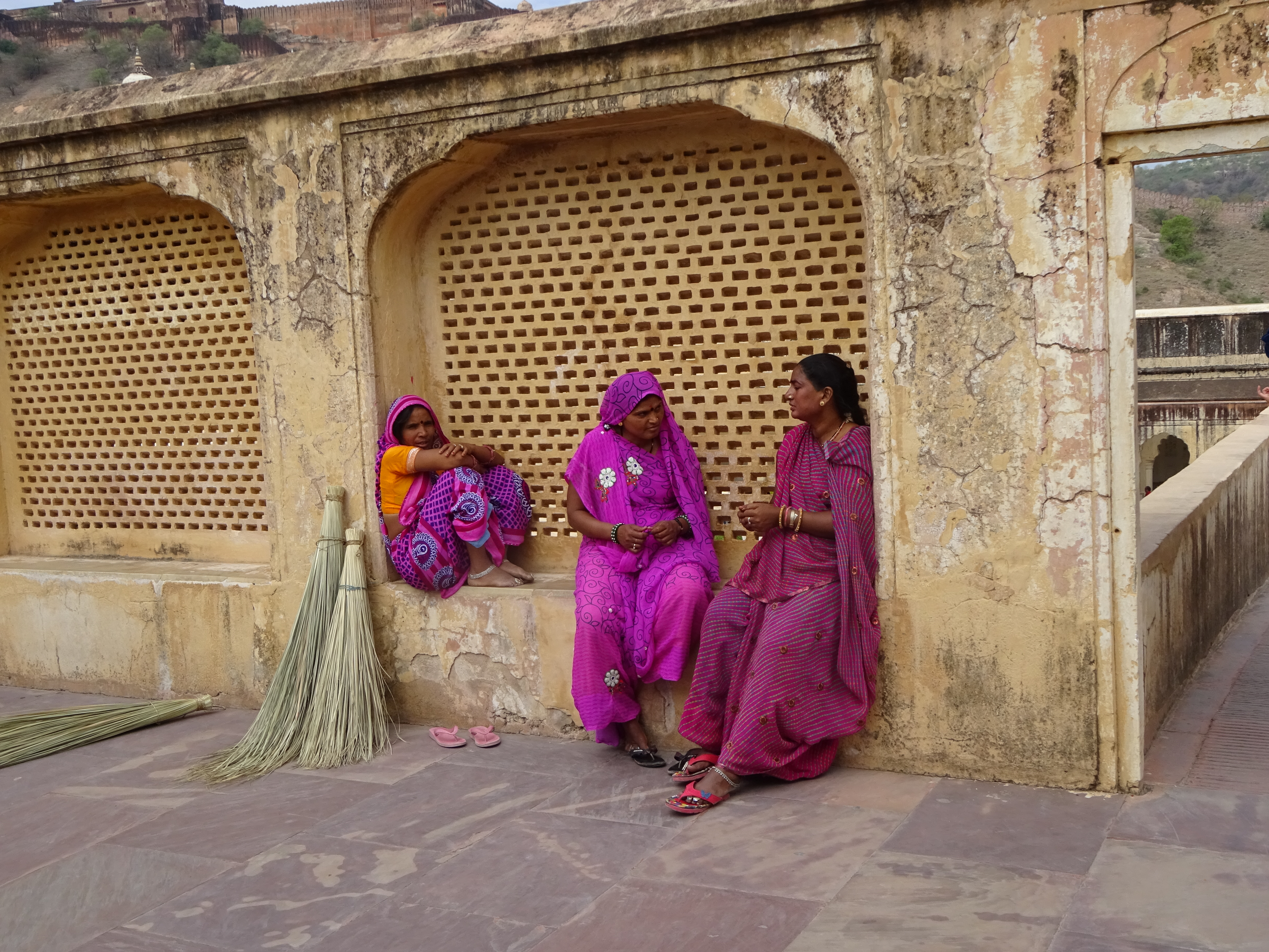 A short walk around the Fort, a tour of the Palace Howdah do’s, and then the Havellis down in town and that was it. Free time to shop and snooze, then in the evening a walk through the Bazaar to the Lake and under the Prostitutes’ gate, before going to Sunset Hill to watch the Fort change colour. Only it didn’t because the dust from the storm still hung on the horizon and, instead of setting, the sun just got eaten up. Shame.