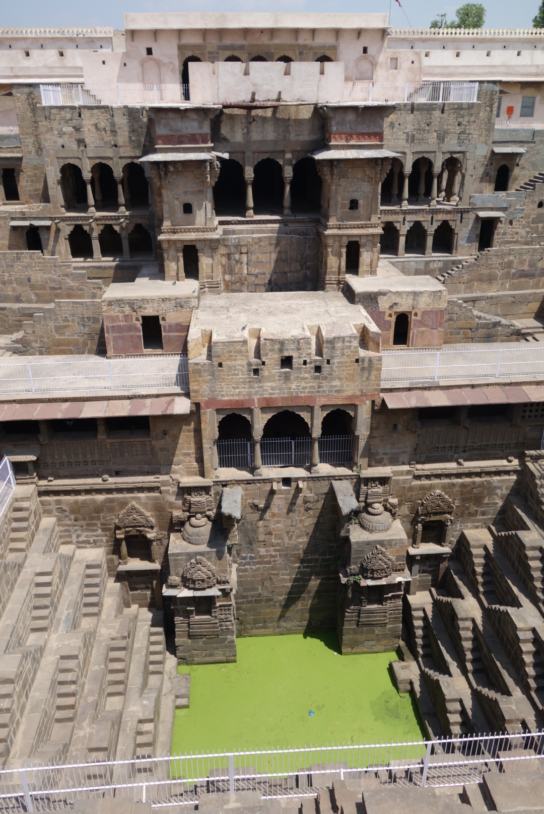 We had one detour on the way, to see the biggest stepped well in the region at Chand Baori. It is huge and it’s in a field, next to a small village in the middle of nowhere. Again you get to ask the question, “Why here?” and again the only answer seems to be, “Because we could”. It’s a pretty amazing Maurice Escher sort of construction and it’s a shame they had to put up protective railings and then paint them bright grey, when a matt black would have disappeared, but I’m not the Minister of Tourism (Still waiting to be historically garrotted).