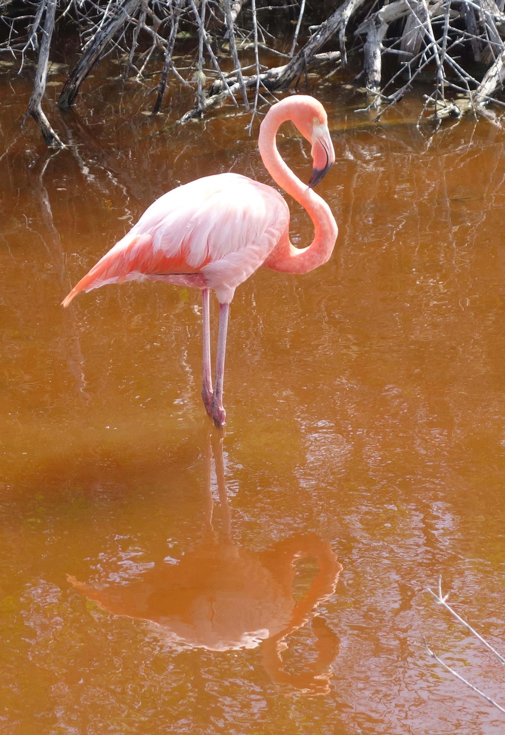 There are Marine Iguanas panting in the shade, Pelicans, Boobies and stuff, then another Giant Tortoise research station reverberating to the Grunt and Clack of conservation. A walk through mangrove takes us to see the Pinkest Flamingoes ever. Imagine you took a flock of 100 Pink Flamingoes and somehow squeezed the colour into just 5 of them, (That’s how many we saw) and this is what you would get, Dayglo Disco pink. Finally we collapse into a bar on the beach where, several beers and a swim later, I am able to get my eco-balance back in trim. After dinner, the Eden rocks onwards to the Punta Essex, innit, wottevah and then Northwards into the night.