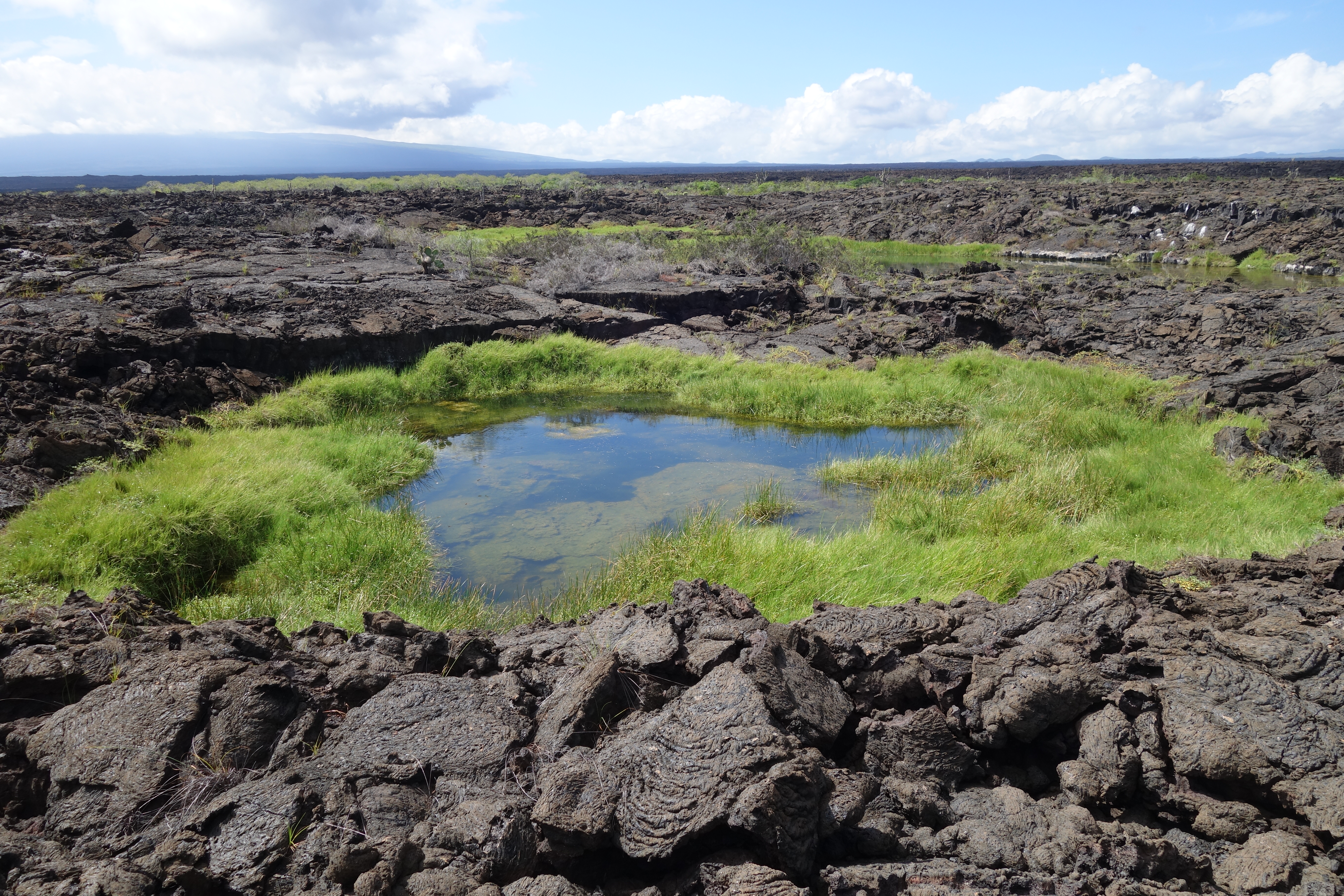 We land off the Zodiacs and walk over vast plains of shattered black, brittle toffee, with lonesome cacti and fringes of mangrove. There is nothing here but tiny lava lizards that scatter underfoot and then, sudden reed lined pools with fish and dragon flies.