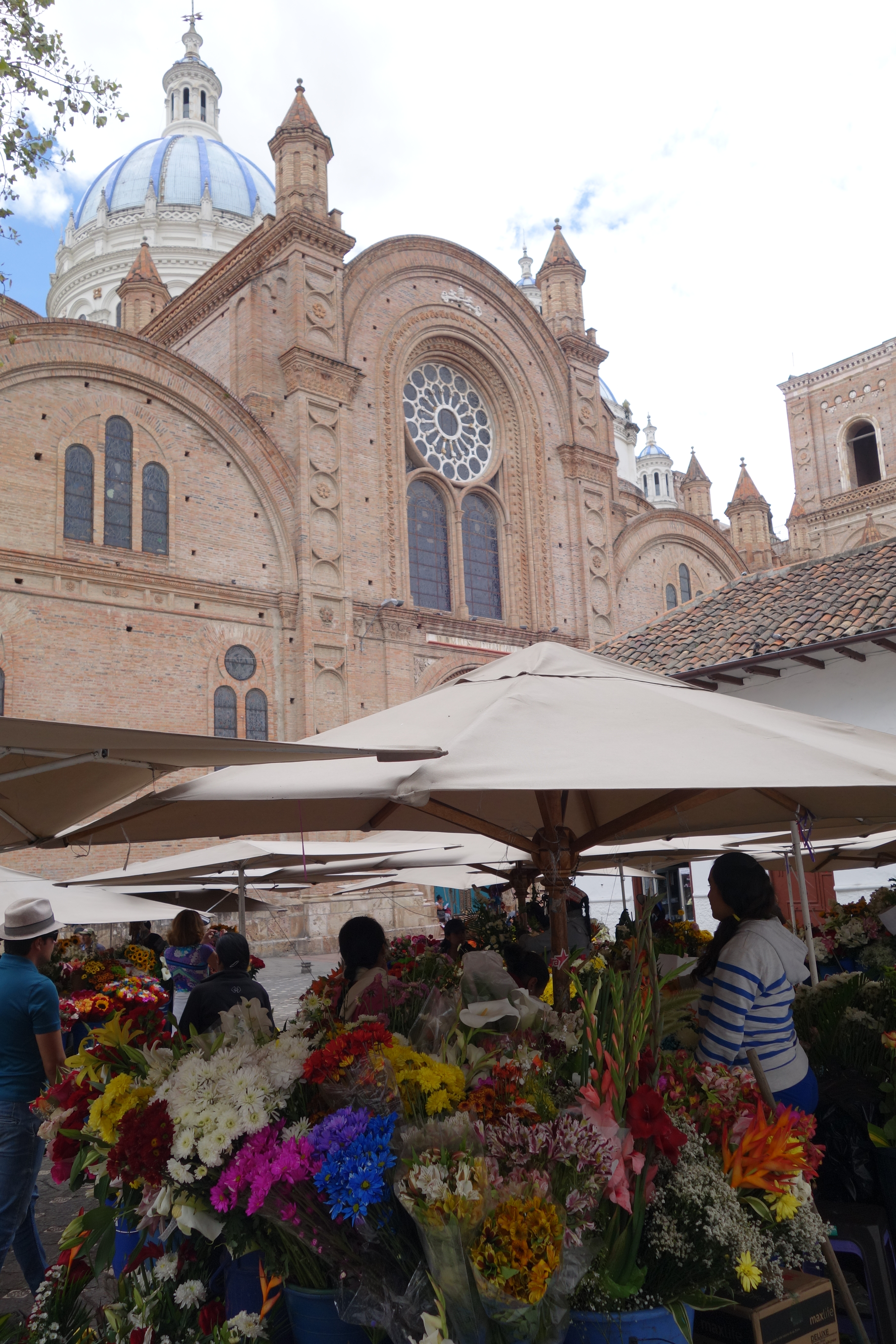 We continue walking through the Fruit, Veg and Meat market, a riot of noise and smells, and on to the Flower market, a riot of colour in the shade of the Cathedral which lofts above, it’s 3 blue domes rising majestically above the crowds of flowers.