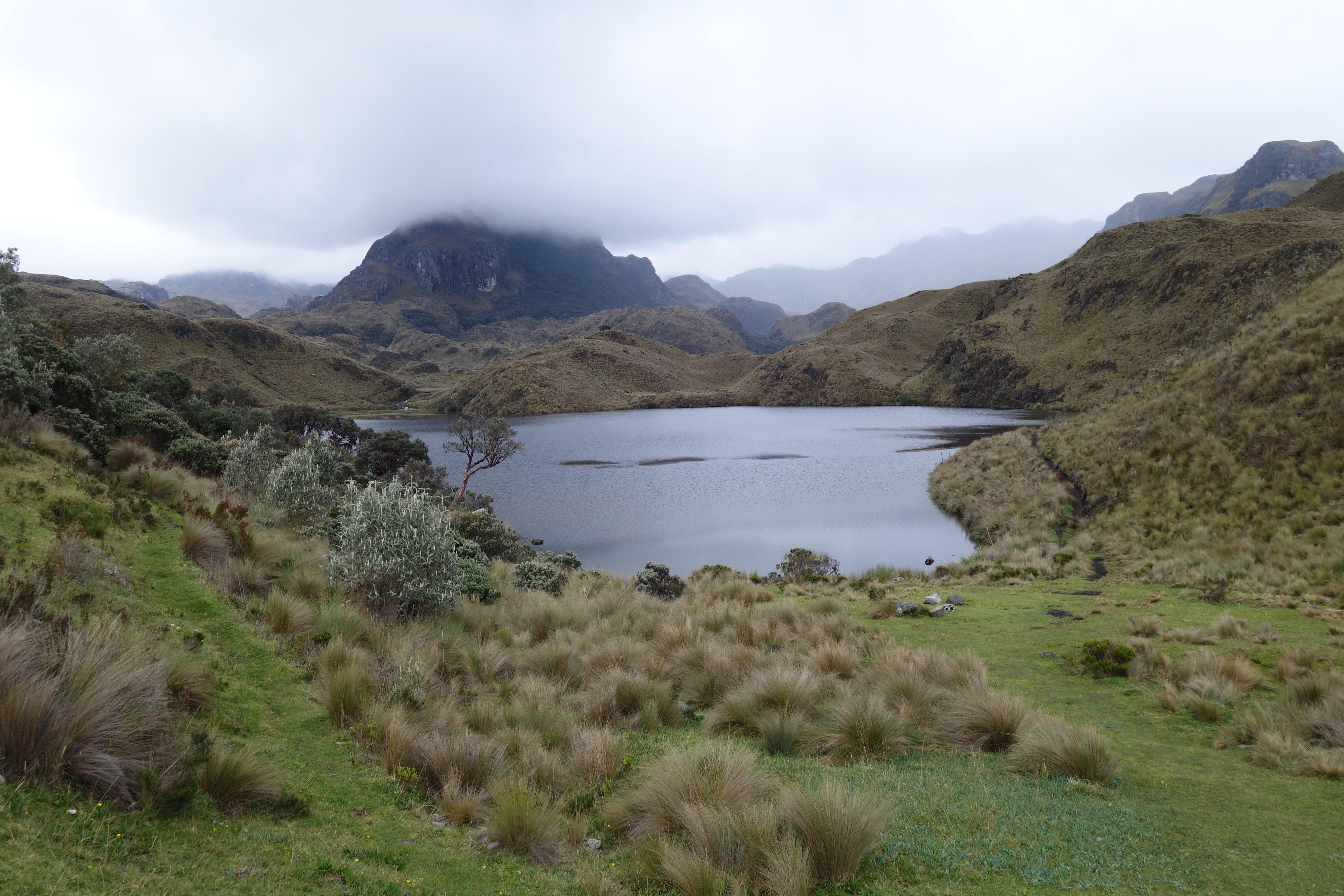 Franco meets us for walkies. He first takes us for a short walk in the local cloud forest, basically he is sussing us out for Stage 2. It’s quite wet and the pretty little glacial lake looks a bit forlorn, but we manage to see some wet Tree Creepers and the Humming Birds sound as if they are gargling rather, than humming. It seems as if we have passed the inspection and so drive on to the top of the pass dividing the Andes. From here we can seeee…. not much. Clouds basically, and so drop back down into El Caja National Park, just below cloud level. We are just South of the Equator but, from the weather and the landscape, we could be in the Scottish Highlands. El Caja turns out to be a real gem.