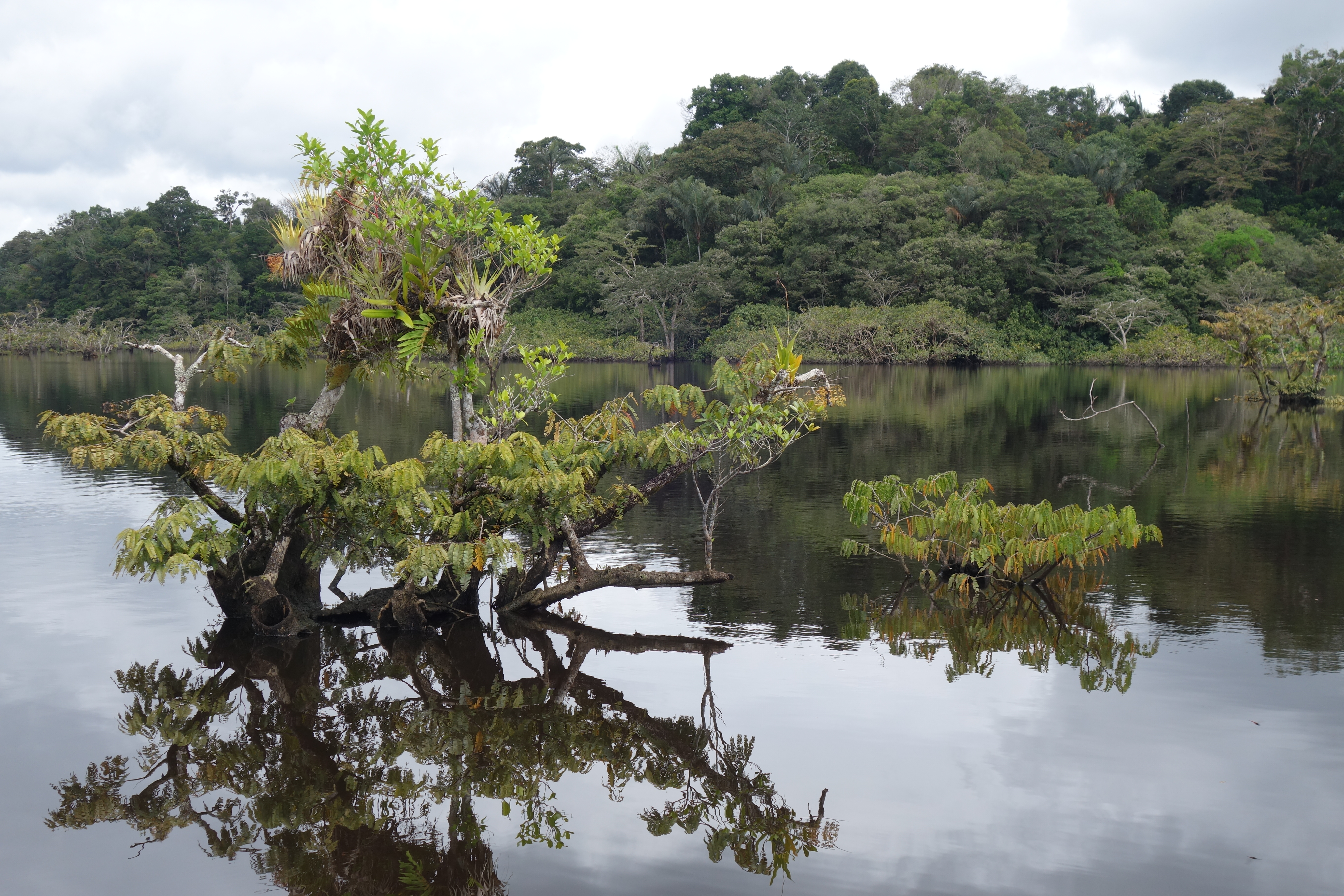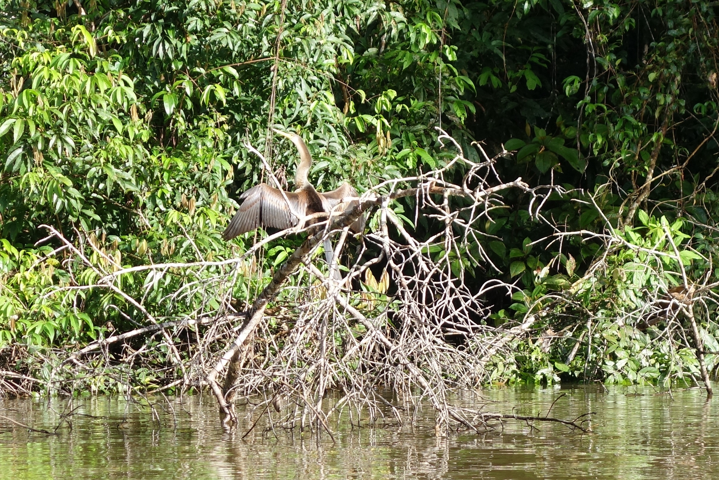 The river snakes through Eden, or is it Hell? Stuff grows on stuff growing on other stuff. There is hardly room to breathe, but there is so much oxygen here it just seeps in through your skin along, with moisture and alien spores. We are already as wrinkled as a 3 hour bath and mushrooms are erupting between my toes. The sky is a strip of blue somewhere overhead. The jungle screams “Compete! Live! Decay! Die! Do it all! Be reborn!” There is no space left, so do it on top of someone else. If that fails, do it inside of someone else. It’s a bit freaky. We are on a 2 and a half hour waterborne motorbike ride, banking left and right between solid walls of green before the river opens out into a huge lagoon which takes another 20 minutes to cross. “Dolphins!” shouts Luis and, in the middle of the lagoon a herd of grey-pink slugs break surface. Flipper they ain’t. River Dolphins are not glamorous. There doesn’t appear to be a firm edge to most of the lagoon, it just sort of disappears amongst the trees. Stranded, stunted loners, stick up out of the water, dripping mosses, epiphytes, bromeliads, ferns, cactuses and other jungle stuff.