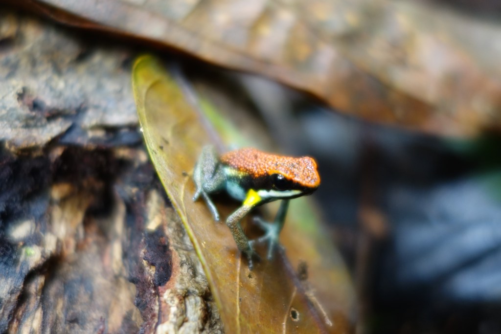 Giant Red Macaws, Huge Toucans, Red capped Cardinals, Kingfishers and many, many more. Monkeys of every shape and size, Sloths and Snakes, brightly coloured Poison Frogs and Metallic Amazonian Blue Butterflies like electric flashes across the greens.