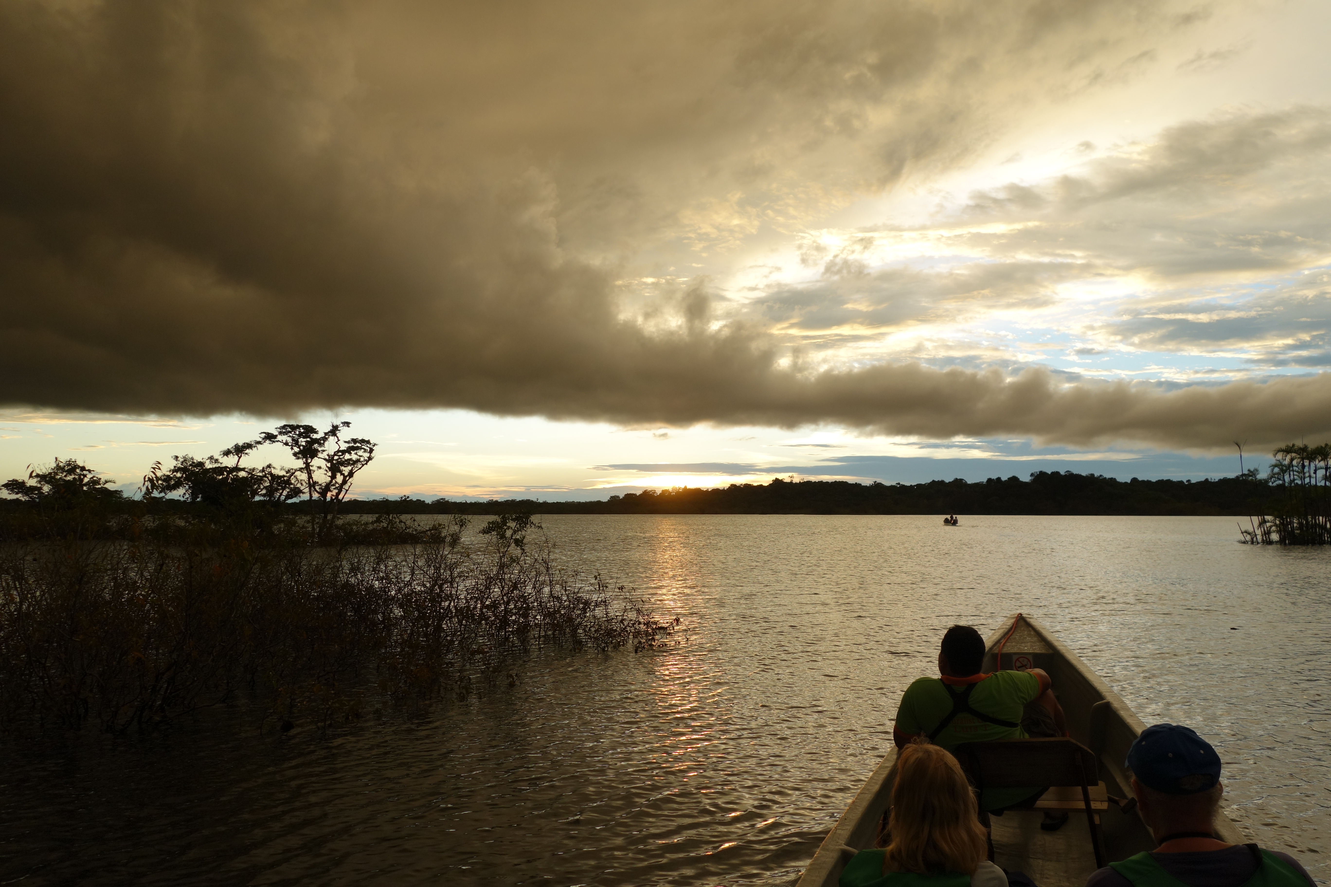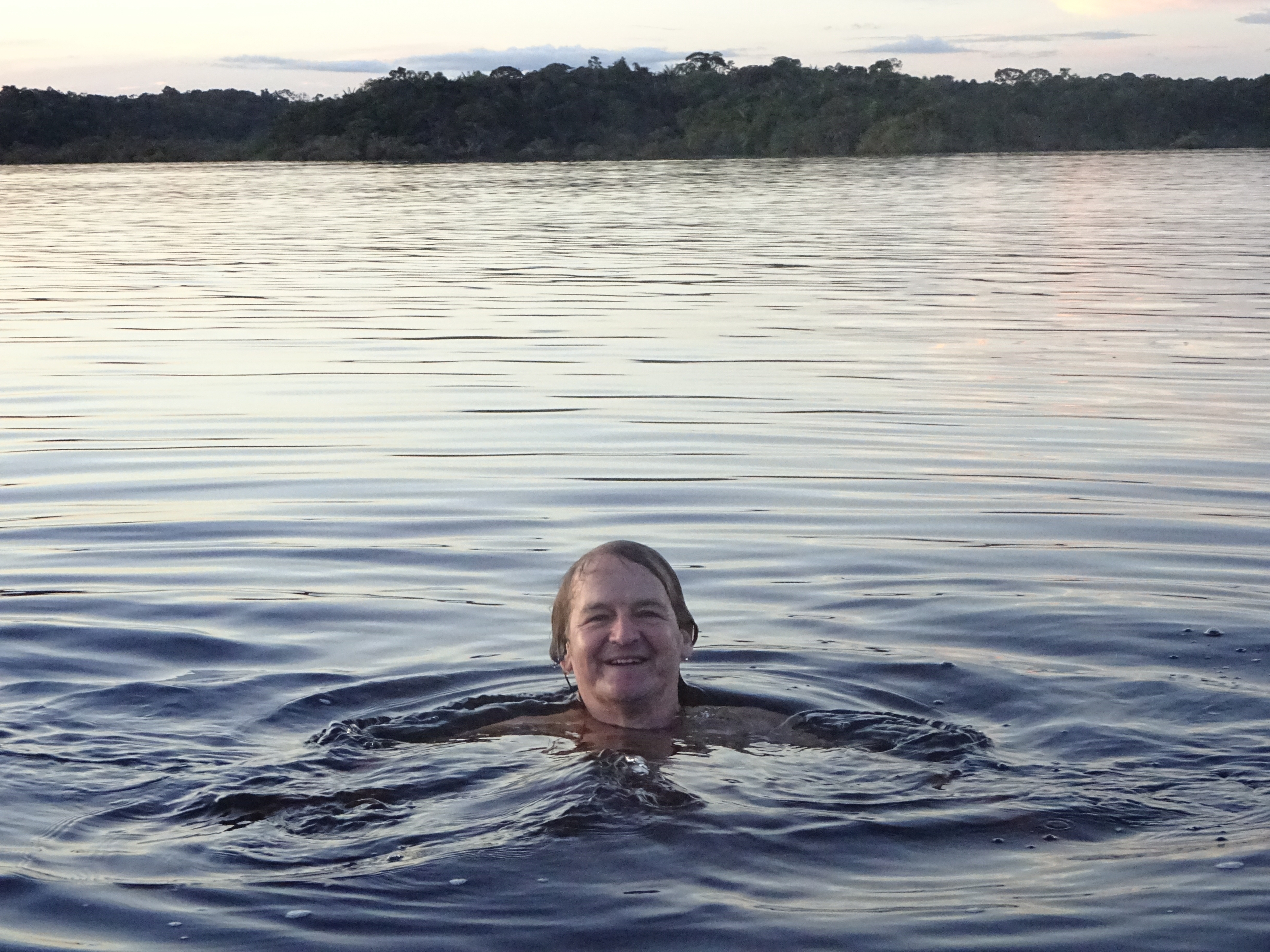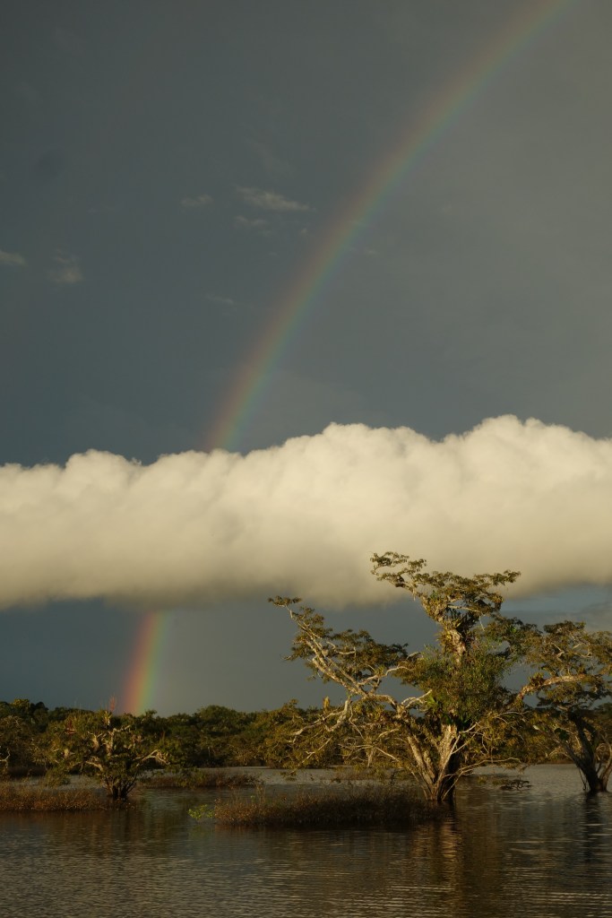 In the evenings we sail into the middle of the lagoon to watch incredible sunsets and swim in and area that Luis defines as “relatively” safe from Black Caymans and Piranha. The water is like glass and the Jungle fringe loses itself in its reflection.