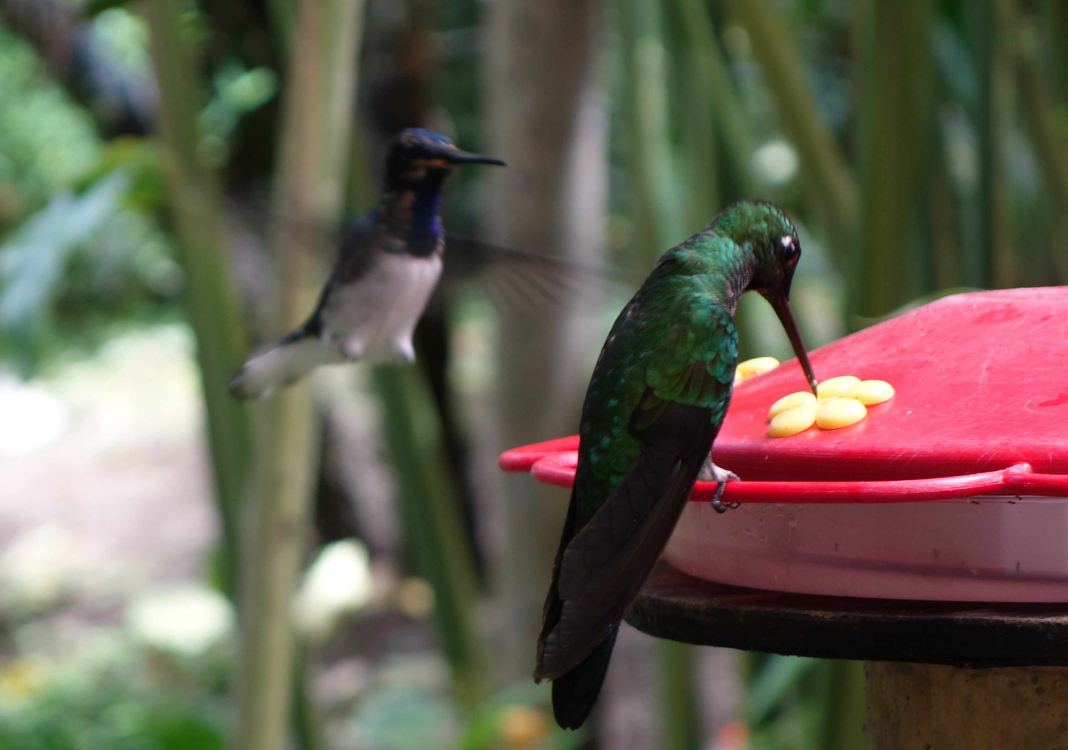 Second stop is a Butterfly farm. More orchids, more humming birds and a billion beautiful butterflies inside a tent. Also a hundred hyperactive ADHD brats, flitting about with the same mannerisms and attention span of an Amazonian Blue. Except that butterflies don’t scream. Well, not very loudly anyway. We don’t actually stop in Mindo because it’s become a hot spot for local tourists grinding their bums down the river in inner tubes and it has got pretty gash, so we head out of town to the Sachatamia Lodge, where we drink coffee and watch birds. We then head off down into the cloud forest where we see absolutely bugger all until, suddenly, Viktor stops in his tracks, visibly trembling with excitement. High, high in the tree tops are 4 Long Wattled Umbrella Birds. Extremely rare. 3 males are trying to score a shag off a single female. Nothing rare there then. But Viktor almost spoils his pants in excitement and, with his 50X zoom gets his Nat Geo shot.