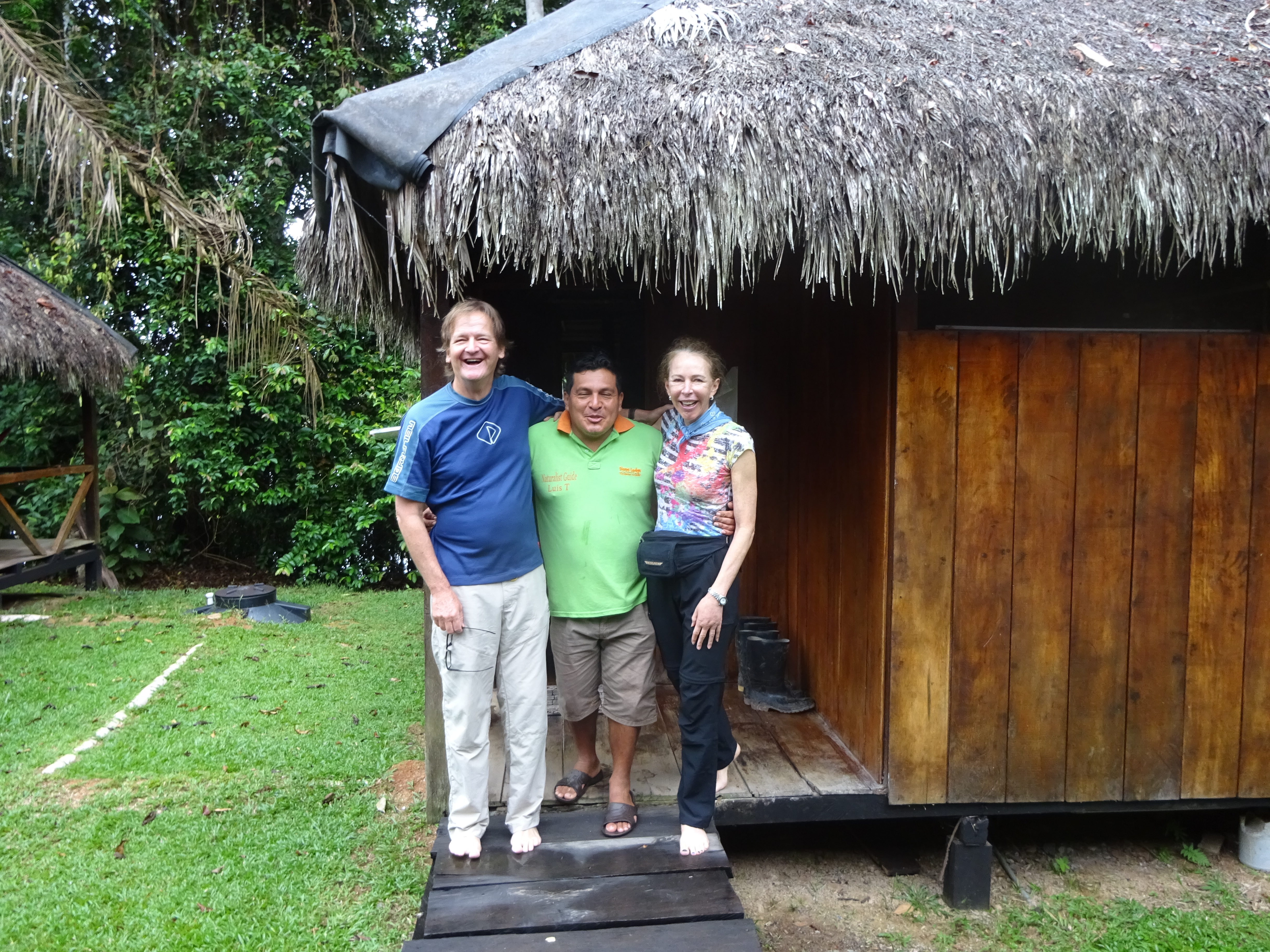 It may seem a cop-out to condense these days but, without wifi, phones, radio and T.V., Life in the Jungle melds into a single breath. It is really fabulous. There are continual boat rides and hikes so that an after lunch siesta, in the hammock on our balcony, is a thing of beauty. Squirrel monkeys troop past, so cute and so mischievous as they parade from tree to tree on a twice daily basis. There are birds and animals everywhere, but it usually takes Luis to spot them.