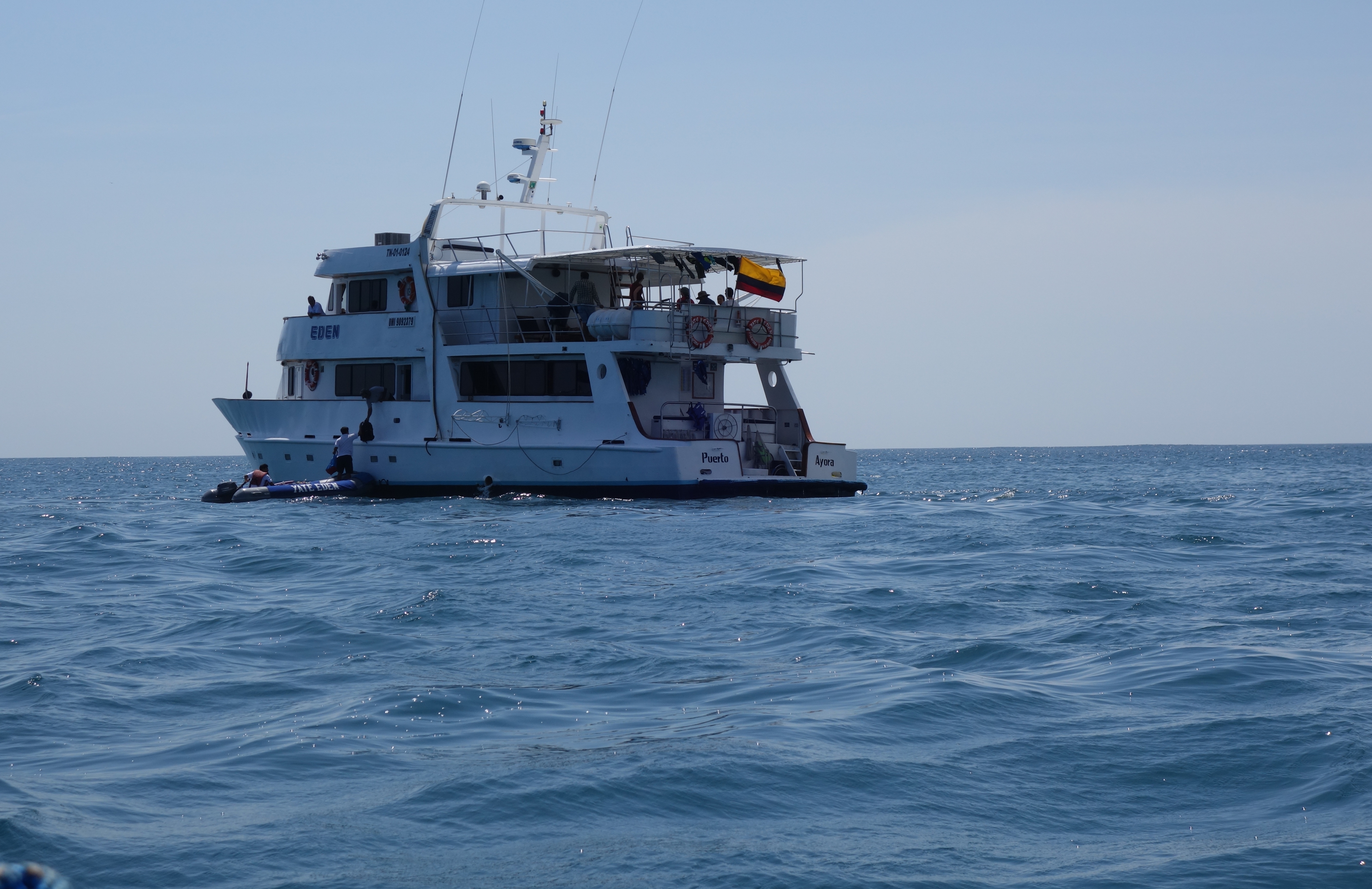 Early, because we have to be up at 4.00am for our drive to the airport and check in for Galapagos. Liz is pulled up at security check because she has a Passion fruit included in her breakfast bag. Appeals from her to just put it in the bin are met with stony silence, she is fingerprinted and photographed for the International file on environmental terrorists. I ate mine earlier and do not tell them of my intention to poop on an island. Our plane traverses the Andes and then tracks South to Guayacil, where we are asked to change planes at 8.00 in the morning. Great, we think, opportunity for tea and a sandwich. Ecuadoreans make great coffee but, Tea is a foreign drink, where a bag of uncertain origin is briefly dipped into a cup of warm milk, gross. While attempting to drink this, we note that no information has been provided about our ongoing flight and it takes 2 phone calls and the near crucifixion of a passing airline rep, to discover that our flight left Quito before dawn because they needed to undertake runway repairs in daylight. Our connecting flight doesn’t happen until 12.30. Rather than inform the passengers of this matter, Airline Management simply decided to ITT (Ignore The Truth). Eventually, our plane turns up and we fly to San Cristobal and meet our guide, Reuben. This guy has the biggest feet in Galapagos. It seems that there is an entire eco-system developed there. We saw entire islands with less flora than his left foot. We head to the port to meet our boat and are ferried out on Zodiacs to the Eden.