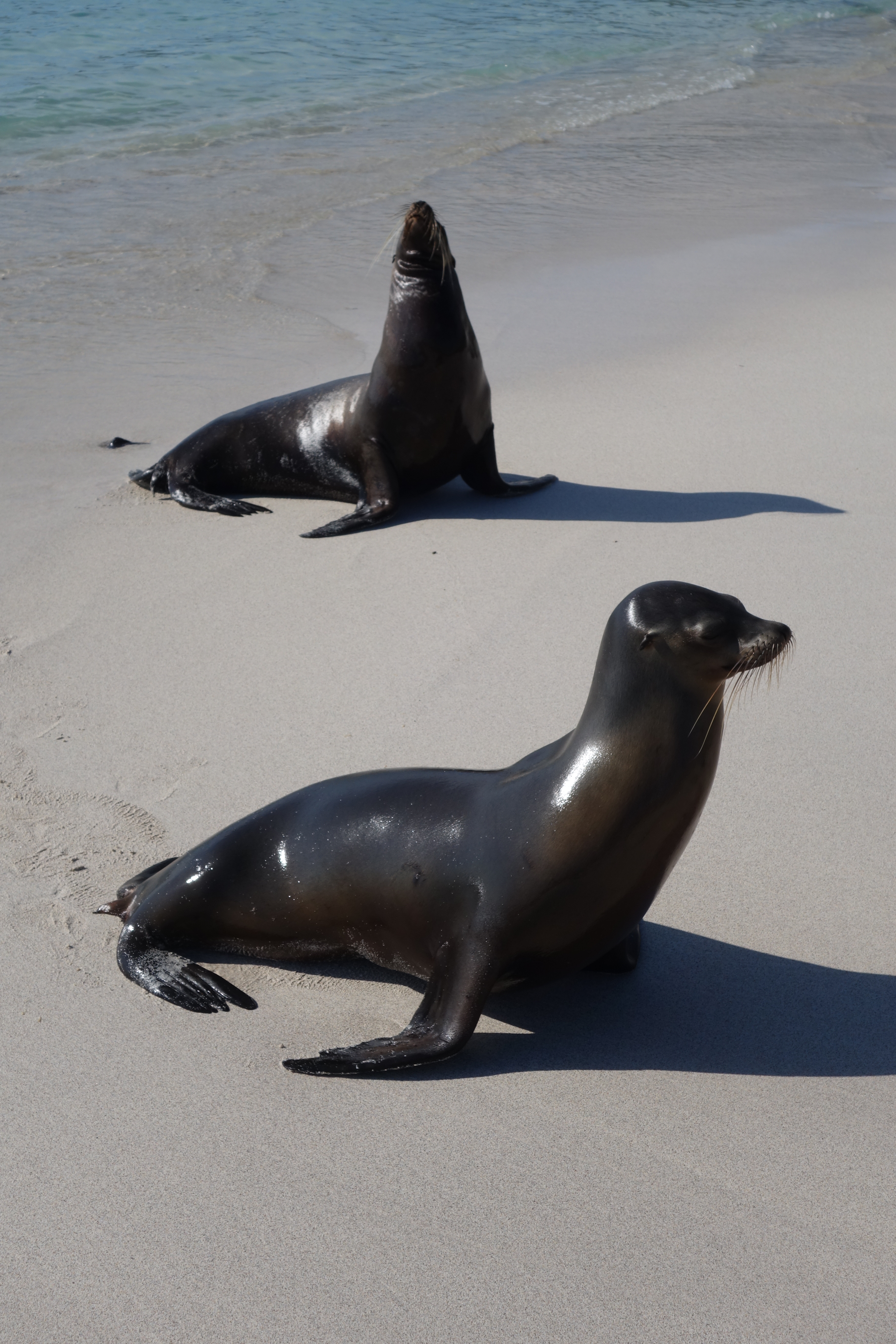 We start by climbing Volcan La Combre for views over Isla Ferdinanda. Finches and Mocking Birds sing us to the top. Lotsa Lava. Back at the landing zone a huge shark cruises the waters edge, incentive not to miss your step into the Zodiac. As we pull away, a mighty Hammerhead slips past. And this is where we intend to swim, but we suit up anyway. Turtles, Sea lions and the biggest, most amazing starfish I have ever imagined. After lunch, another lava walk with a zillion Marine Iguanas swimming out and surfing back in, then another snorkel to watch them grazing the underwater algae. There are more turtles and finally a group of young Sea lions playing tag with us and comparing underwater somersault techniques. Magical.
