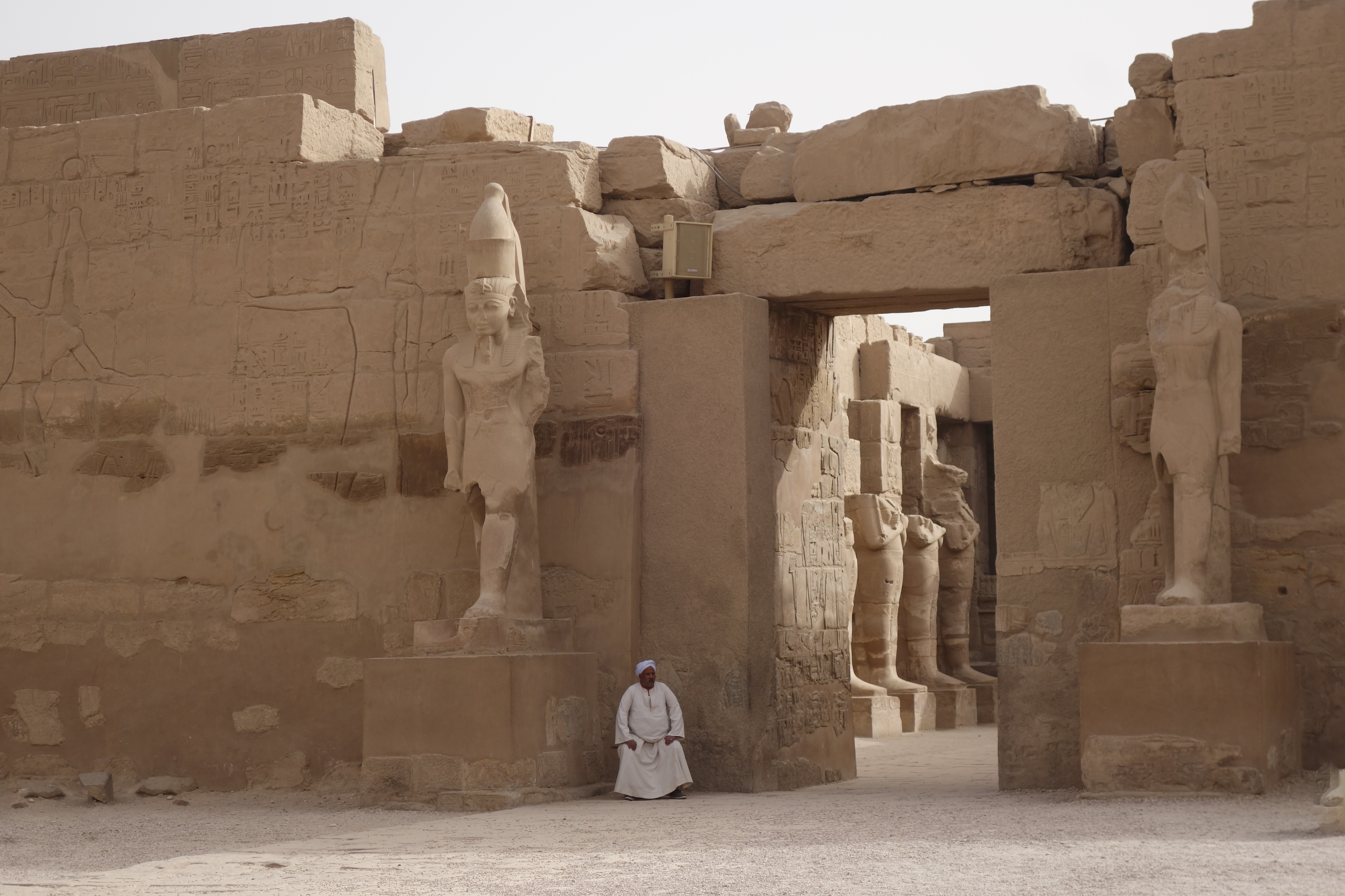 On the way back into town we stop at the Colossi of Memnon, two statues of Pharaoh Amenhotep III. It makes you wonder who was in charge of names 3,400 years ago? In England it was all Ugg and Biff and Gronk, but in Egypt, thanks to picture writing featuring birds, bees, slugs and lots of wiggly lines, it was Amenhotep III. Anyway, his statues are pretty knocked about, but yes, they are colossal although, who was Memnon?