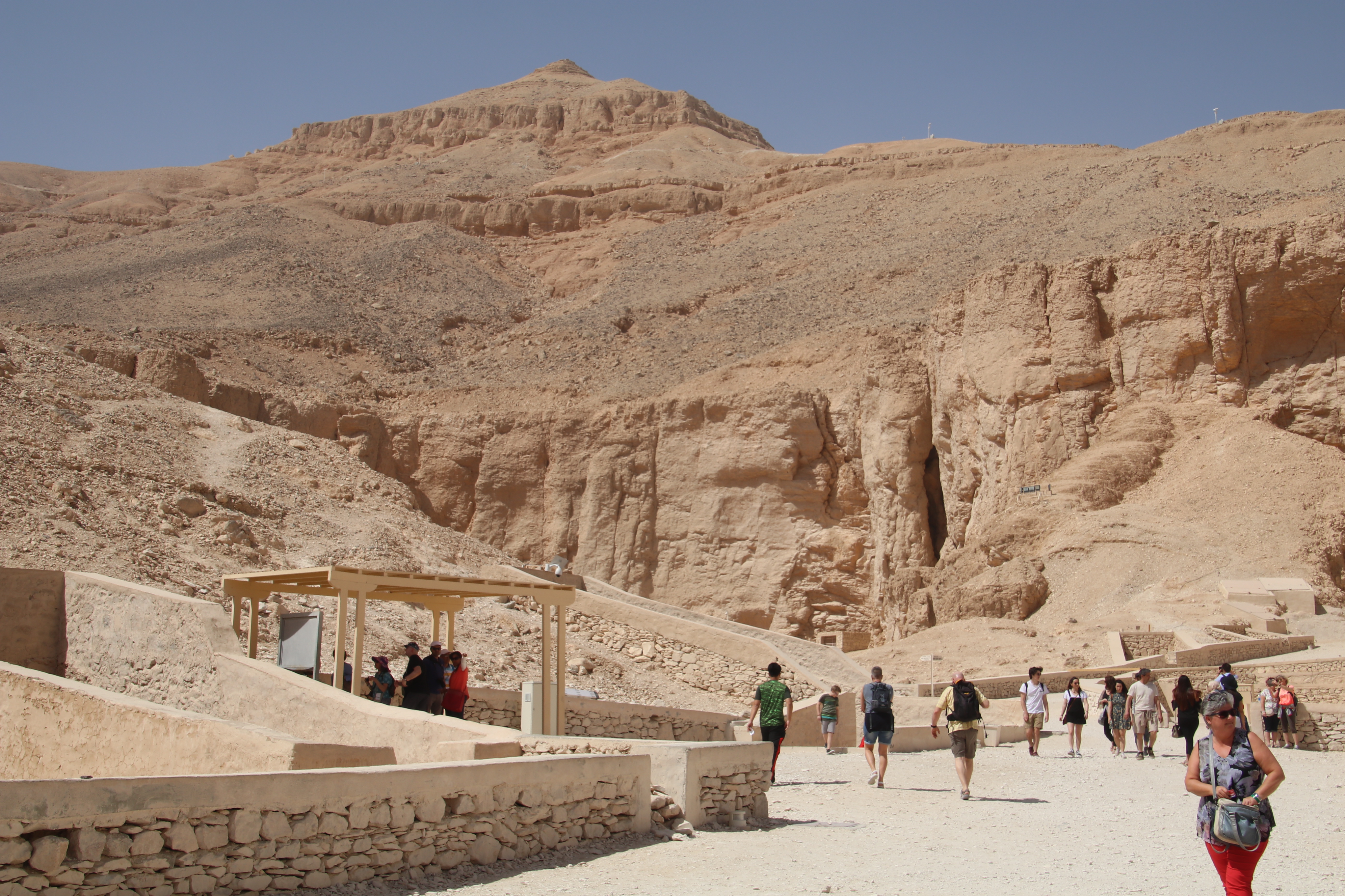 After her place, we drive round to the Valley of the Kings. This is a big valley full of rubble and tourists and tombs. Tombs ‘R Us. If I told you whose tombs we visited, I would be lying. I’m pretty sure there was a Seti in there and almost definitely a Ramesese (There is always a Ramesese and No. II was pretty prolific at sticking his name on anything he could get his chisel on but, whether that included somebody else’s tomb, is probably unlikely). Some are boring. We didn’t even go into Tut’s tomb because we were told it’s really boring. Once you got made Pharaoh, you set some guys on to dig your tomb and, as he got the promotion at age 9 and pegged it at age 19, they didn’t have much time to get it dug, let alone cover it in 3 million hieroglyphs telling the gods what a great guy you were. What is incredible is the amount of loot they found stashed in there, accumulated in those few years.