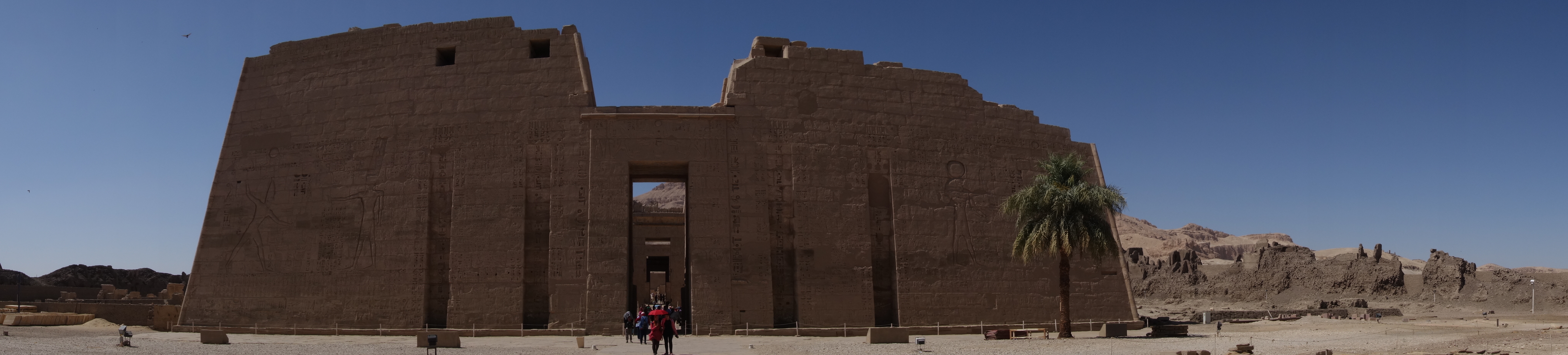 Then on to the Mortuary temple of Ramesese III at Medinat Habu. III named himself after II, because he was a bit of a fan, stalker possibly. This is only Day 2 of Temples and already things are beginning to blur. It has a big Pylon (Entrance gate) with lots of smiting of the Syrians, followed by some columns, followed by a big room, more smiting, Cretans this time and gods saying “Hey Ram! Yo de Man!” and then a smaller room with a tomb. Basic format. This complex is very long and surrounded by a major mud-brick wall, which tells you how often it rains around here.