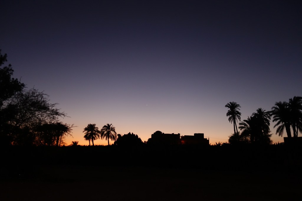 For reasons beyond my comprehension, I wake at 5.00pm and know that I am not getting back to sleep so, climb out of bed, dress and walk back up the road to witness dawn at the Temple. On the road up ahead, a tall, rangy figure lopes ahead. It am Aladin, he bin to de Mosque, done his practisin’ an’ deside to be comin’ ‘ere ‘stead of goin’ back to bed. He has a mark high on his forehead, a bit like ash or some form of skin growth. Dori remarked on it previously as we have seen a number of guys with the same mark, so I ask him and he tells me that 55 years of banging your head on the ground, five times a day is going to do that to you. Yup, especially if the floors are a mucky as Egypt’s.