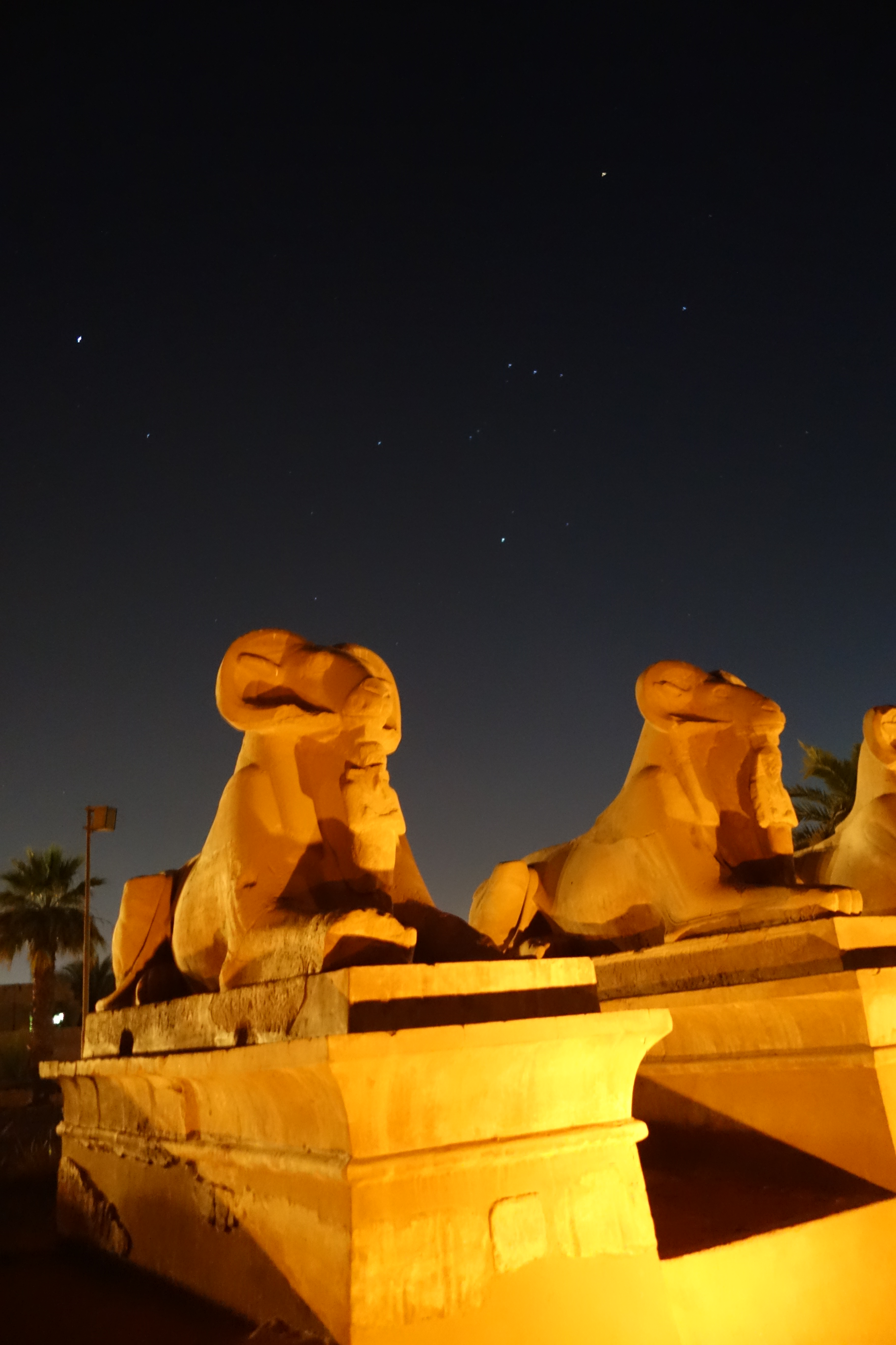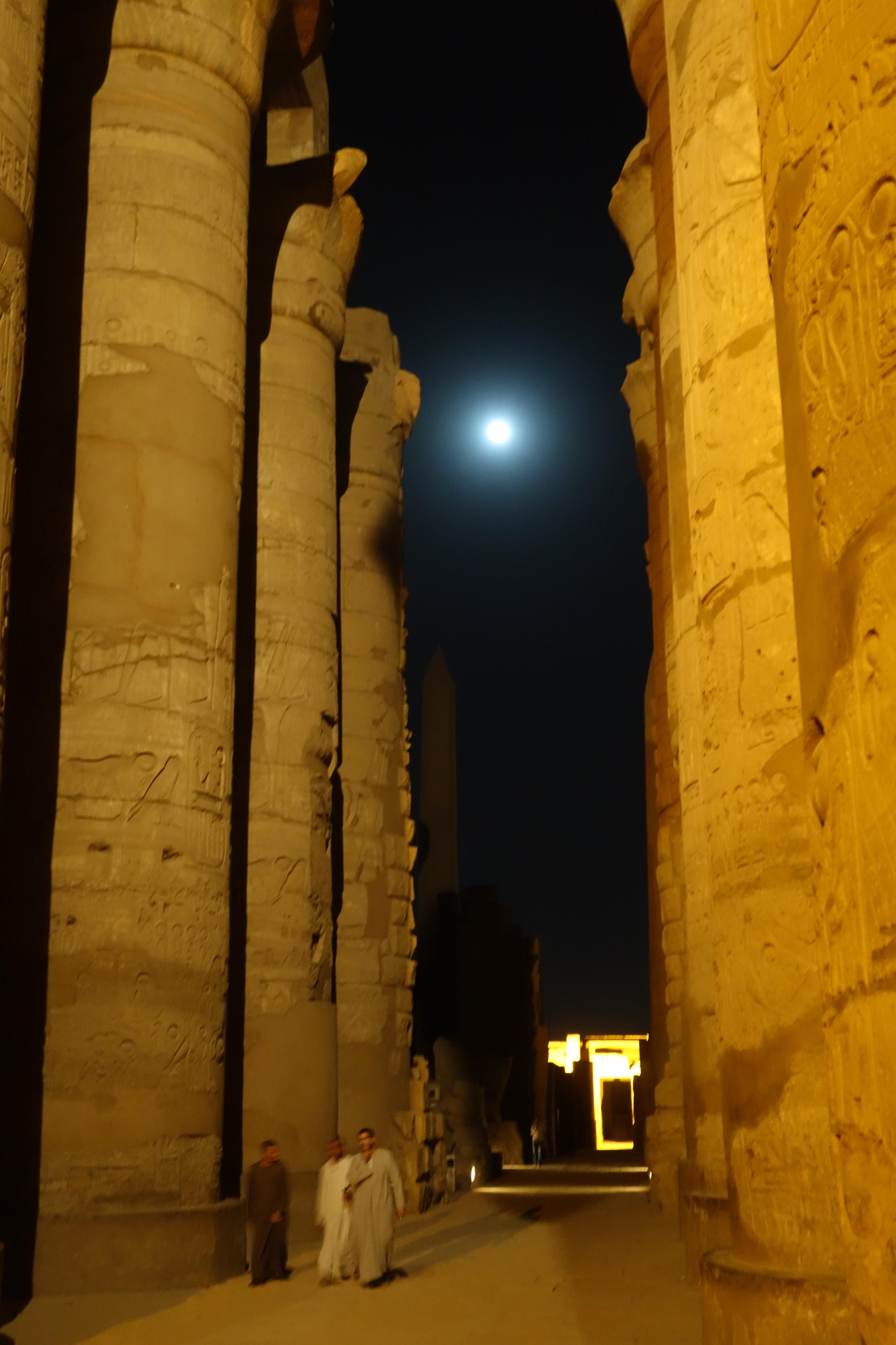 We move on to Luxor temple at the other end of 2 kilometres of sphinxes lining a ceremonial avenue. It’s not as big as Karnak and not quite as glorious, nonetheless, the immensity is breathtaking. If the Pharaohs intended the gods to dwarf the people, it worked. We watch as the light fades and stars begin to twinkle, a twinkle that started a billion light years ago. 4,000 years is only a wink in those terms.