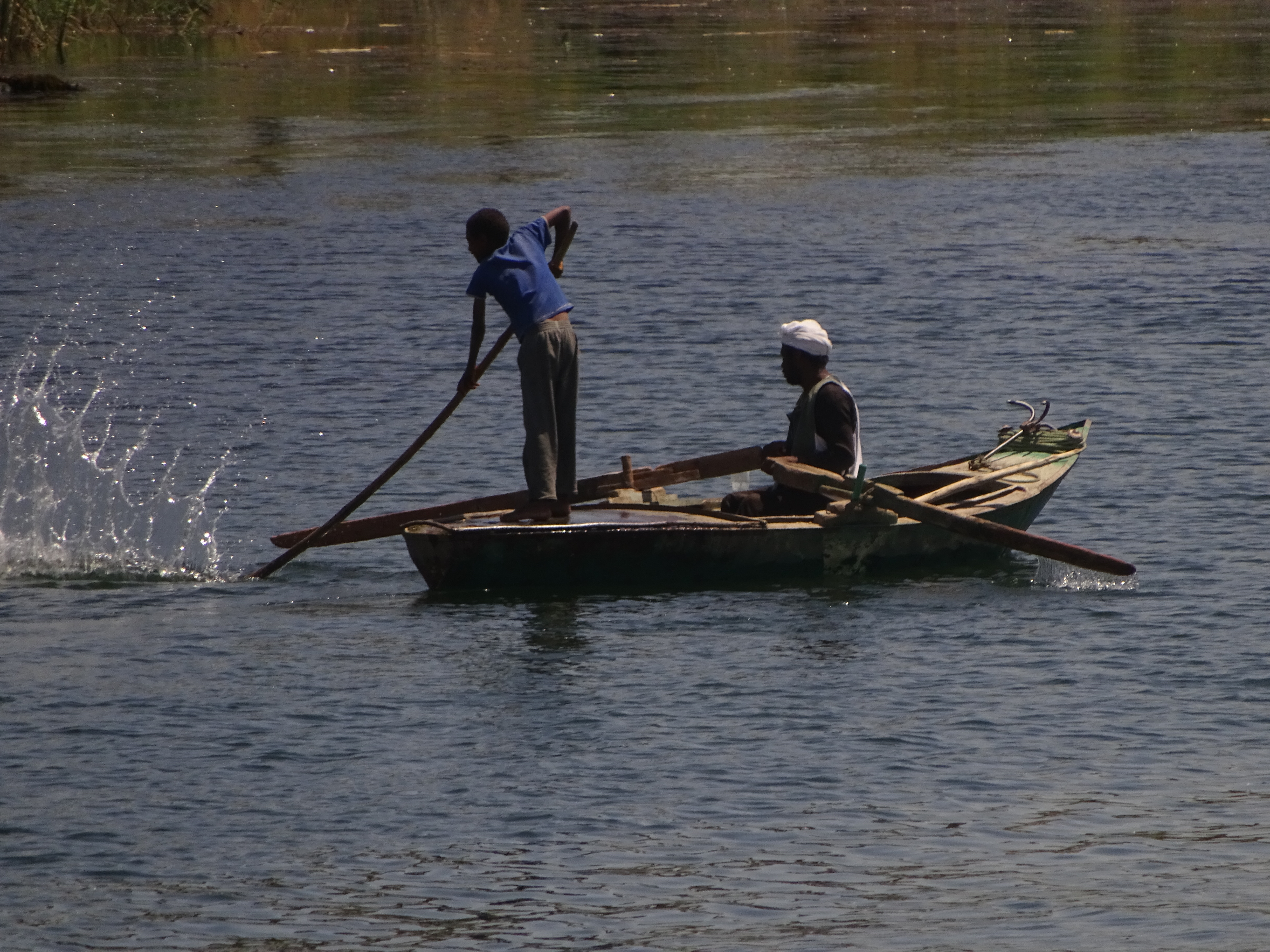 Liz, having been brought up a sailor, is in ecstasy, I’ve got the hammock, so I’m not far off. Once away from the towns, the Nile is incredibly pretty. The water is clean, reflecting a pure blue sky, the banks are a luscious green of date palms, crops and pasture. All manner of birds swoop, roost and fish between the numerous fisherman’s row-boats and the smaller, single sailed feluccas as an occasional donkey trots its load along the bank. The golden desert rises up beyond.