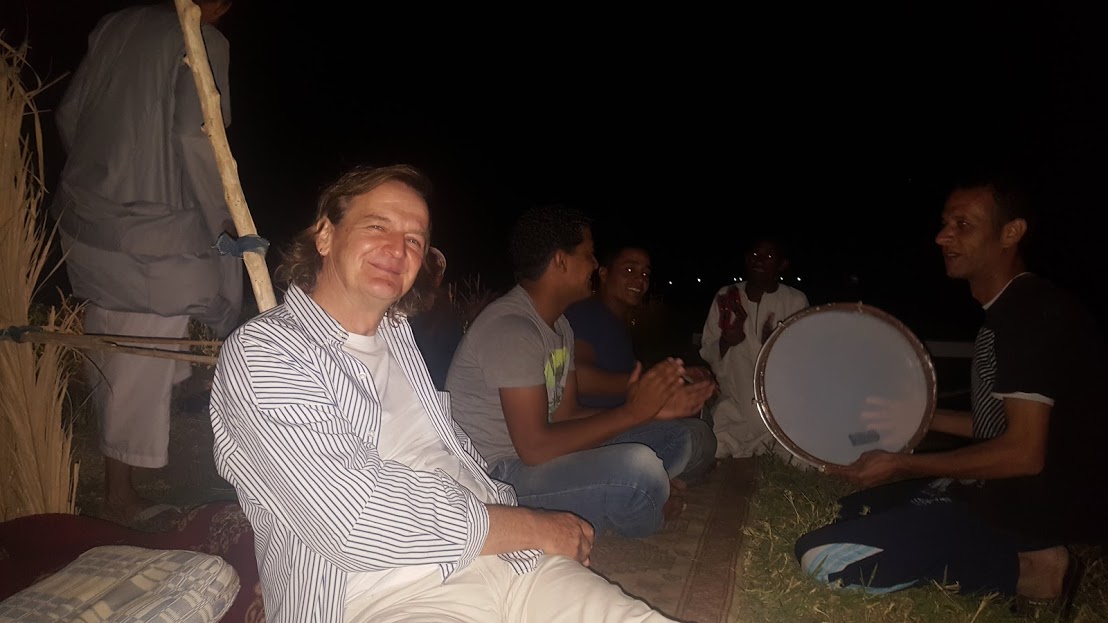 This is not high-speed travelling, this is luxuriating while moving, (just). Our floating palace continues to waft us upstream and we moor for the night as the sun sets. Abdul and Chef Mohammad serve dinner, damn that man can cook, the best Chef of the whole trip and so much food. Dinner is served under our canopy, a canopy of stars over that. Sleep comes with the gentle gurgle of the Nile slipping beneath our keel.