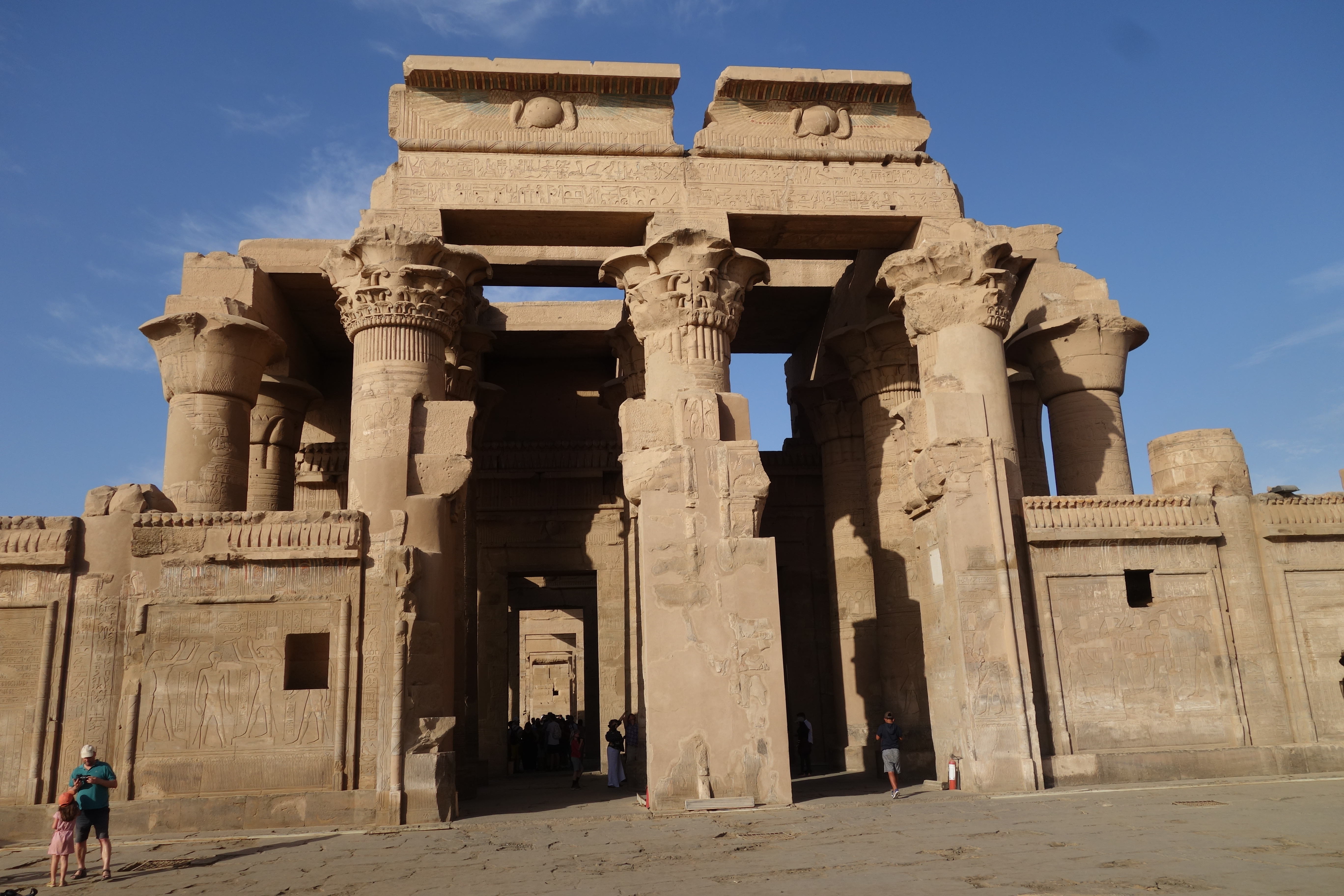 The Zekrayaat sails on to Kom Ombo. This is one of the few towns that has a dockside big enough to park the enormous five storey, slab sided, cruise liners that plough up and down the river. These are ugly boats full of cheap tour groups and not to be recommended. Many are packed with Russians in various shades from snowy white to scorched vermillion, who sport the latest thing in Russian fashion and hairstyles. They pack the double Temple of Sobek (The Crocodile God) and Haroeris (The other Falcon headed God). People climb over the ancient relics to get the best selfies and I keep moving in case I get clambered on. One of the most significant parts of the Temple is the Doctor’s Waiting Room where 2,500 year old hieroglyphs illustrate medical instruments that were still in use in the late 1900’s.