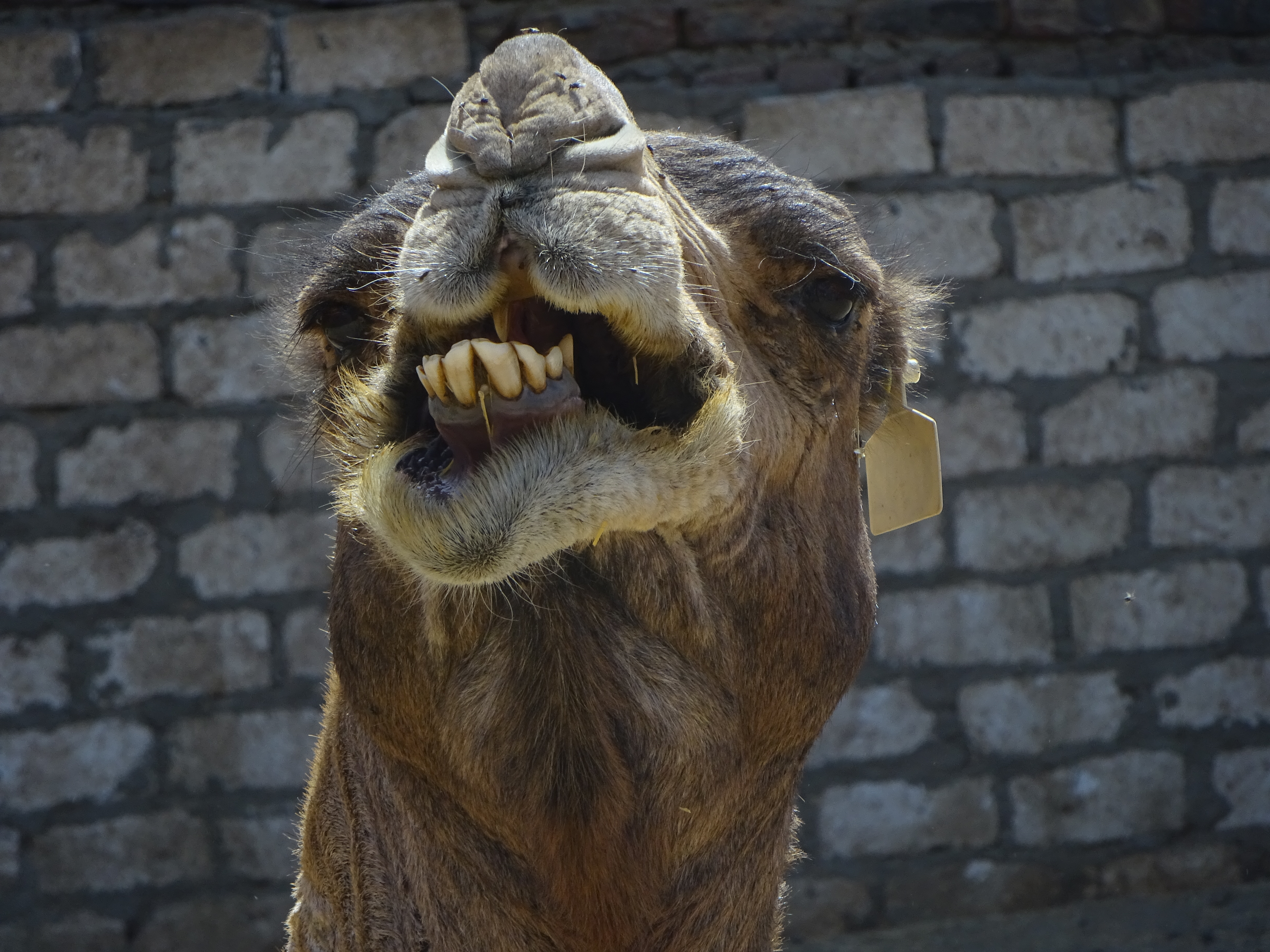 But, once we are mounted and away, it’s surprisingly good fun. The camels, as always, are uncomfortable but seem to be very good natured, quite pretty and not overly smelly. Nobody shouts at them or beats them with sticks although, laughing like a drain at what we look like and trying to take photos of it all, I drop Loleta’s steering rope and she gives me a serious piece of her mind.