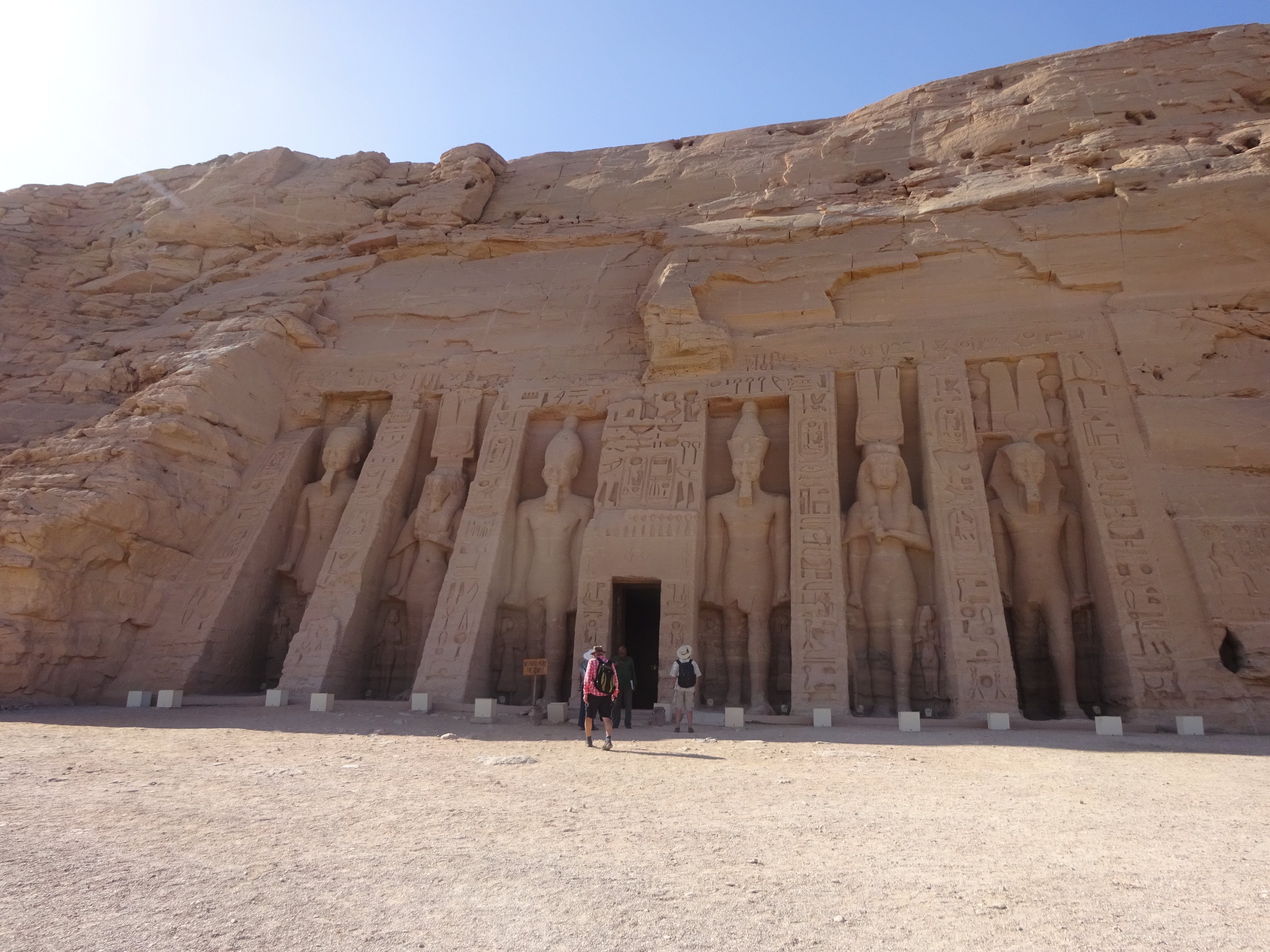 After dropping our bags at the guest house, we go straight up to the Temples of Ramesese II and Queen Nefertari. Originally the temples had been carved into a cliff face looking up the Nile, the main conduit for invading armies from Africa. The gist being; “ Look, I’m a nice guy, here’s one of me and the missus. But, hey, this one is me on my own. See how big I am? Now you wouldn’t want to piss off a guy this big, would you? So why don’t you just head off back to Africa and we’ll say no more about it. Alright?” I guess it must have worked and saved on some of the smiting. The statues sitting outside are massively impressive.