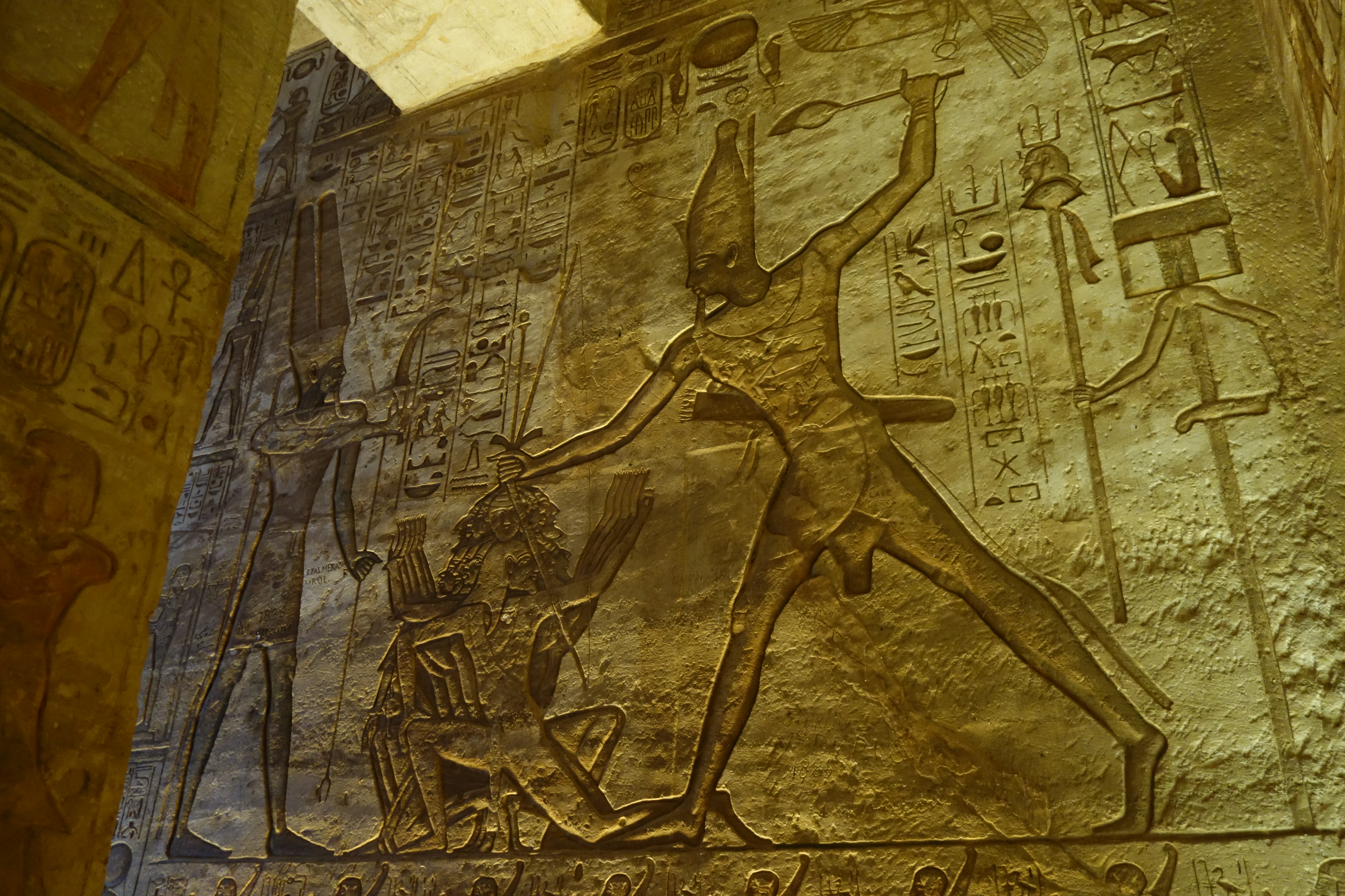 Anyway, some of the other dudes had over 30 years to draw loads of pictures showing how they smote the Africans and smote the Syrians and smote the Cretans. There can’t have been many people left to smite by the time they were finished. And they also show how their reign was blessed by 637 gods with men’s bods and ram’s heads, or lion heads, or hawk heads and even, occasionally, bloke’s heads (Although, several of the one’s with bloke’s heads had either a booby under their armpit or one leg and an enormous boner). Life was obviously a lot of fun in ancient Egypt.