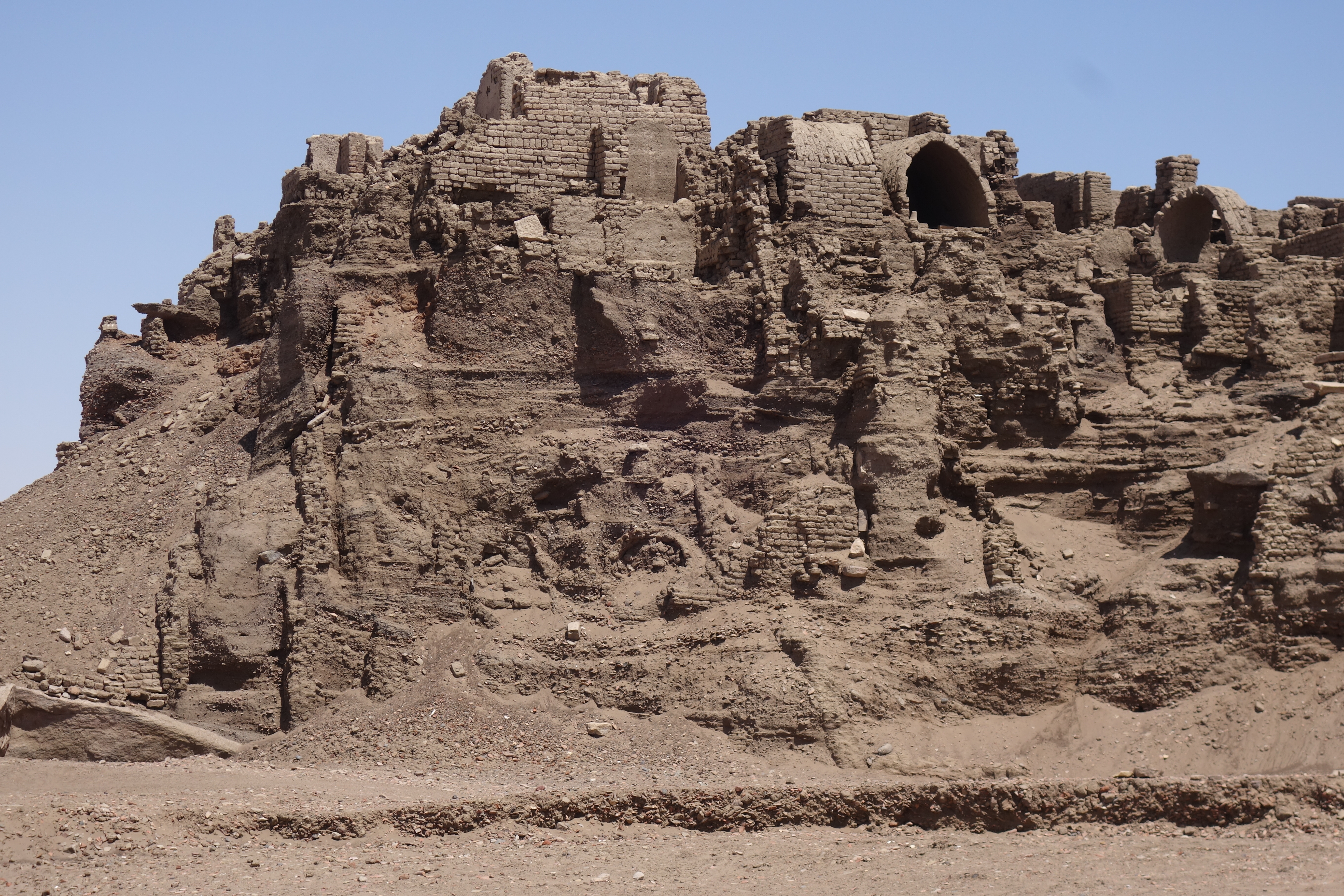 In the morning we stop at El Kab, where a small village sits next to what once was the biggest town in Southern Egypt. The village is a shithole and a gaggle of kids rush down to meet us holding baskets and plates that appear to have been woven from industrial waste. We are into re-cycling and we like to help out, but it’s only worth buying if you like it and this stuff looks radioactive. We shake them off and visit the ancient city which, is just a huge mud-brick wall enclosing some grass and dirt, but it is massive. We pass though the cultivated land and onto some tombs cut into the desert cliffs, they are okayish, but Salah saves the day by interpreting the hieroglyphs and teaching us Pharaonic numbering.